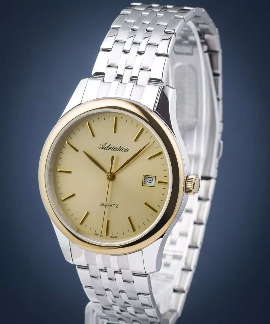 Часы Adriatica A1024.2111Q представляют собой идеальное сочетание элегантности и функциональности, разработанное для современных мужчин. Их стильный циферблат защищен сапфировым стекломСапфировое стеклоПрочный и надёжный материал из кристалла сапфира синтетического происхождения, характеризующийся особой твёрдостью и устойчивостью к царапинам и повреждениям., что придает дополнительную устойчивость к царапинам. Корпус из нержавеющей стали подчеркивает их изысканность и долговечность. Надежный кварцевый механизм с калибром RONDA 515 гарантирует точность времени, а водозащита WR 50 (5 ATM) обеспечивает защиту от воды в различных условиях. Браслет из нержавеющей стали с раскладной застёжкойРаскладная застёжкаТакой тип застёжки используется только на браслетах из металла. Она никогда не раскрывается полностью, происходит разделение на 2 и более частей. Раскладывающая застёжка снизит вероятность потери часов к минимуму., гармонично дополняет общий дизайн и обеспечивает комфортное ношение на запястье. Часы оснащены функцией отображения даты в окошке в положении 3 часа, что добавляет практичности в повседневной жизни. БезельБезельВнешний ободок, закрепляющий стекло. В спортивных часах так называется поворотное кольцо с делениями на циферблате, выполняет роль таймера – замеряет отрезки времени на шкале. Неподвижный безель – элемент декора. Однонаправленно вращающийся безель на дайверских часах позволяет фиксировать моменты погружения и выныривания на поверхность. с PVD-покрытиемPVDУльтратонкое покрытие наносится в технике вакуумного напыления, сочетает в себе нитрид титана особой прочности со слоем золота или оксида хрома. Несёт в себе декоративную или защитную функцию..