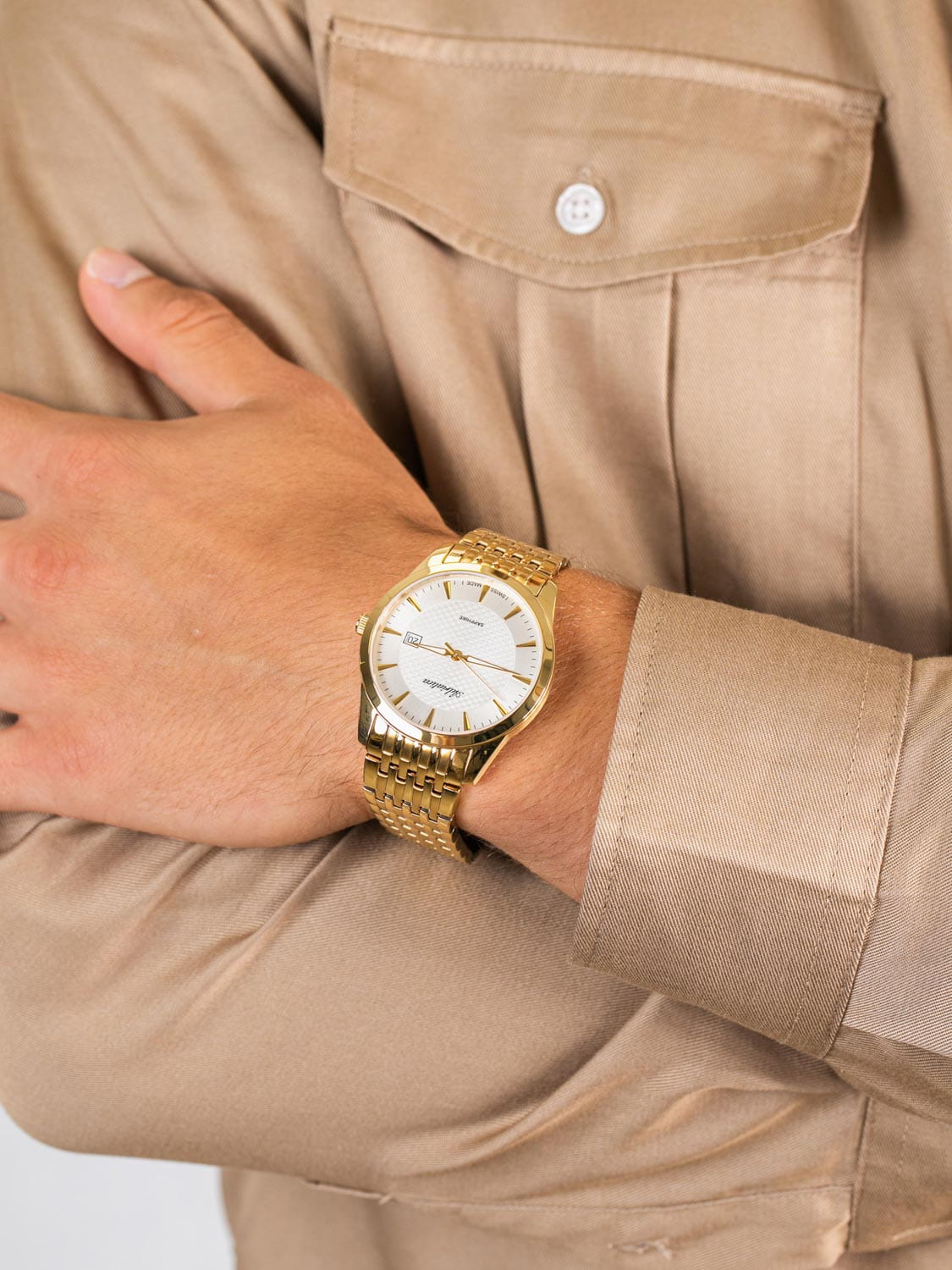 Мужские часы с сапфировым стеклом Adriatica Premiere A1288.1113Q, кварцевый механизм с высокой точностью. Сапфировое стекло устойчивое к появлению царапин, обладающее высокой прозрачностью. Класс водозащиты: 50 метров, позволит защитить корпус от случайных брызг или капель дождя. Корпус часов изготовлен из стали, позолоченного цвета.