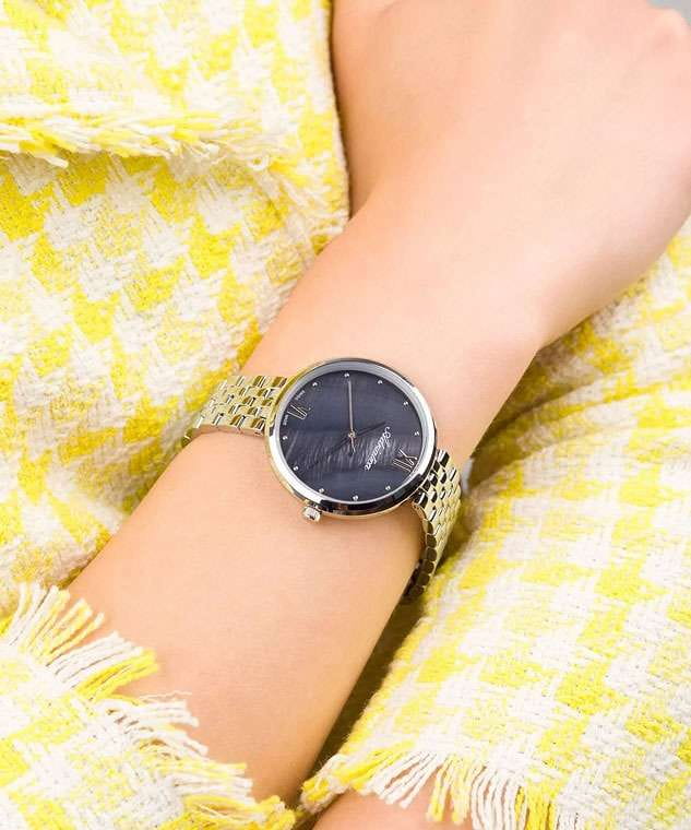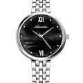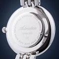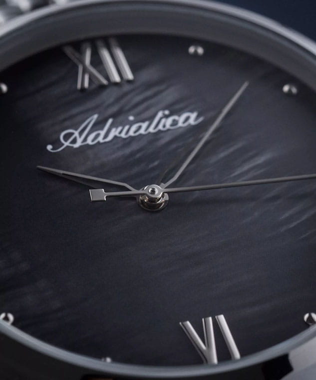 Женские часы Adriatica Essence A3760.518ZQ имеют кварцевый механизм с высокой точностью. Минеральное стеклоМинеральное стеклоМинеральное стекло представляет собой искусственно выращенный минерал кварца. Такое стекло отличается особой устойчивостью к повреждениям и царапинам. Уступает по некоторым качествам сапфировому стеклу. обеспечивает надежную защиту перламутрового черного циферблата, на котором расположились метки в виде точек и римские цифры VI и XII. Корпус часов изготовлен из нержавеющей стали серебристого цвета, что придает часам утонченный и стильный вид.  Браслет из нержавеющей стали с раскладной застёжкойРаскладная застёжкаТакой тип застёжки используется только на браслетах из металла. Она никогда не раскрывается полностью, происходит разделение на 2 и более частей. Раскладывающая застёжка снизит вероятность потери часов к минимуму., гармонично дополняет общий дизайн и обеспечивает комфортное ношение на запястье. Надежный кварцевый механизм с калибром RONDA 763 гарантирует точность времени, а водозащита WR 30 (3 ATM) делает эти часы практичным выбором для повседневного использования.