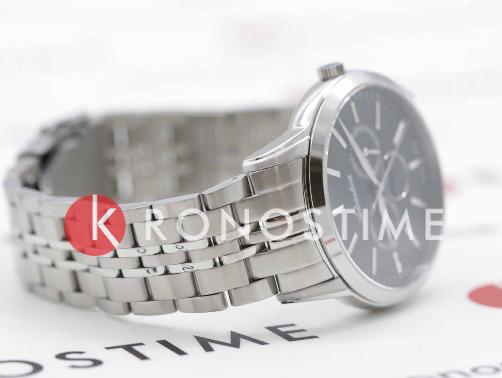 Часы Adriatica A8306.5114QF воплощают в себе элегантность и функциональность, идеально подходящие для современных мужчин, ценящих швейцарское качество. Их черный циферблат защищенный сапфировым стекломСапфировое стеклоПрочный и надёжный материал из кристалла сапфира синтетического происхождения, характеризующийся особой твёрдостью и устойчивостью к царапинам и повреждениям., заключен в корпус из нержавеющей стали диаметром 42 мм и толщиной 9 мм. Надежный кварцевый механизм с калибром Ronda 706 обеспечивает высокую точность, а водозащита 5 ATM делает часы устойчивыми к воздействию воды. Стальной браслет с раскладной застёжкойРаскладная застёжкаТакой тип застёжки используется только на браслетах из металла. Она никогда не раскрывается полностью, происходит разделение на 2 и более частей. Раскладывающая застёжка снизит вероятность потери часов к минимуму. обеспечивает комфортное и надежное ношение. Часы оснащены тремя дополнительными циферблатами с функциями отображения числа месяца, дня недели и фазы Луны, что придает им неповторимый характер. Люминесцентное покрытиеЛюминесцентное покрытиеПозволяет считывать показания времени в темноте. Производители наносят на стрелки, часовые индексы, безель или поверхность циферблата светонакопительный состав, дающий холодное свечение. на стрелках обеспечивает отличную видимость в темноте.
