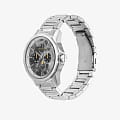 Мужские наручные часы с минеральным стекломМинеральное стеклоМинеральное стекло представляет собой искусственно выращенный минерал кварца. Такое стекло отличается особой устойчивостью к повреждениям и царапинам. Уступает по некоторым качествам сапфировому стеклу. Armani Exchange Banks AX1736, кварцевый механизм с высокой точностью. Класс водозащиты: 50 метров, позволит защитить корпус от случайных брызг или капель дождя. Корпус часов изготовлен из стали. Модель имеет серый циферблат с эффектом луны, серебряные часовую, минутную и секундную стрелки. Циферблат оснащен серебряными индексами в виде жезлов, а также дополнительными циферблатами фаз Луны, дня недели и даты. Стальной браслет на раскладной застёжкеРаскладная застёжкаТакой тип застёжки используется только на браслетах из металла. Она никогда не раскрывается полностью, происходит разделение на 2 и более частей. Раскладывающая застёжка снизит вероятность потери часов к минимуму..