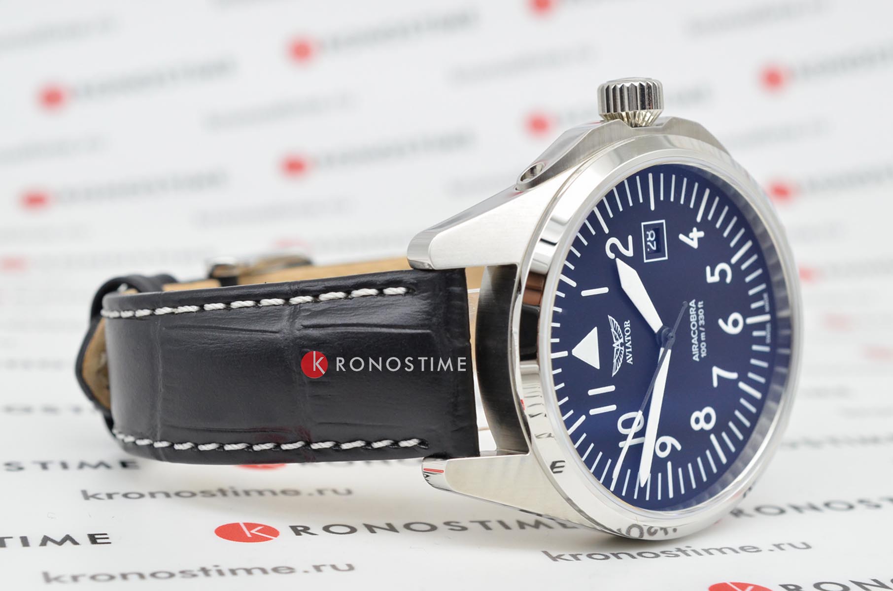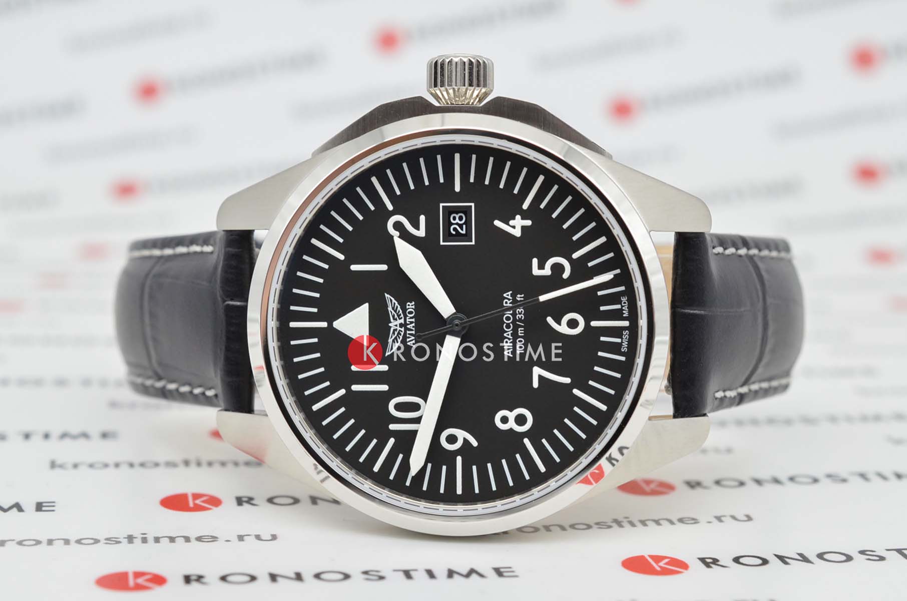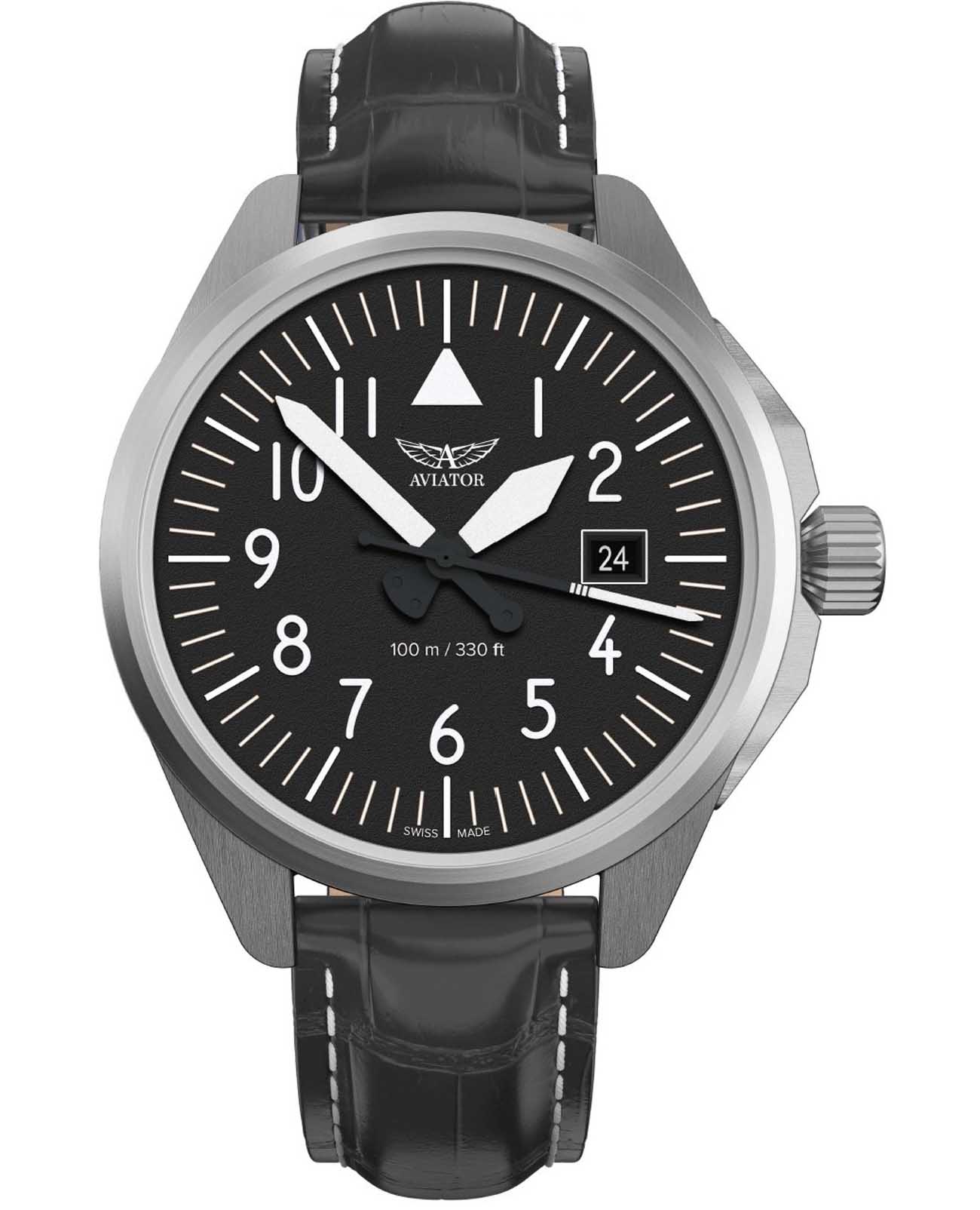 Aviator V.1.38.0.315.4 “Airacobra 43 Type A” — надёжные швейцарские пилотские часы с насыщенным функционалом и строгим авиационным дизайном. Корпус диаметром 42,8 мм выполнен из нержавеющей стали.