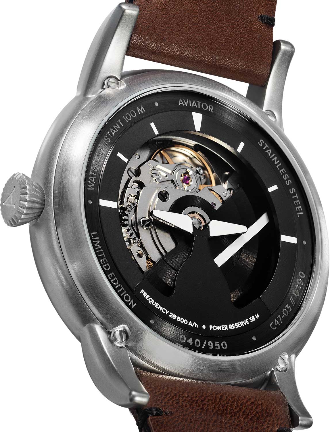 Aviator Douglas V.3.31.0.228.4 — швейцарские часы в классике авиадизайна, сочетающие безупречную читаемость и высокую надёжность. Лимитированная серия. Корпус диаметром 45 мм выполнен из нержавеющей стали с PVD-покрытиемPVDУльтратонкое покрытие наносится в технике вакуумного напыления, сочетает в себе нитрид титана особой прочности со слоем золота или оксида хрома. Несёт в себе декоративную или защитную функцию. серого цвета. Накладные метки выполнены в виде арабских цифр. Часовые метки и стрелки покрыты люминесцентным покрытиемЛюминесцентное покрытиеПозволяет считывать показания времени в темноте. Производители наносят на стрелки, часовые индексы, безель или поверхность циферблата светонакопительный состав, дающий холодное свечение. Superluminova, позволяющим легко определять время даже в тёмное время суток. Поверхность защищена прочным сапфировым стекломСапфировое стеклоПрочный и надёжный материал из кристалла сапфира синтетического происхождения, характеризующийся особой твёрдостью и устойчивостью к царапинам и повреждениям. с антибликовым покрытием, устойчивым к царапинам. Сердце модели — швейцарский механизм Sellita SW 200, известный своей точностью и долговечностью. Калибр управляется регулятором Etachron, который обеспечивает высокую точность хода как на земле, так и над землей. Водозащита 100 метров, позволит плавать, нырять и заниматься другими водными видами спорта. Завинчивающаяся головка и задняя крышка обеспечивают уверенную ударопрочностьУдаропрочный корпусМеханизм заключён в корпус, выполненный из современных материалов, устойчивых к ударам, механическим повреждениям и падению с высоты: инновационный пластик, карбон, нержавеющая сталь, титан. и надёжную защиту от влаги и пыли. В механизме 26 камней, запас хода 38 часов. Модель дополнена кожаным ремешком с выразительной текстурой и классическим стилем, закреплённым с помощью классической застежки — для максимального комфорта и лёгкости в повседневном использовании. Прозрачная задняя крышка украшена имитацией функции контроля управления хвоста самолета. Ротор механизма указывает на градусы, как в авиационном приборе триммер. Aviator — это образец лётной точности, инженерной чёткости и сдержанной роскоши, идеально подходящий для тех, кто ценит функциональность и уверенность в каждом элементе.