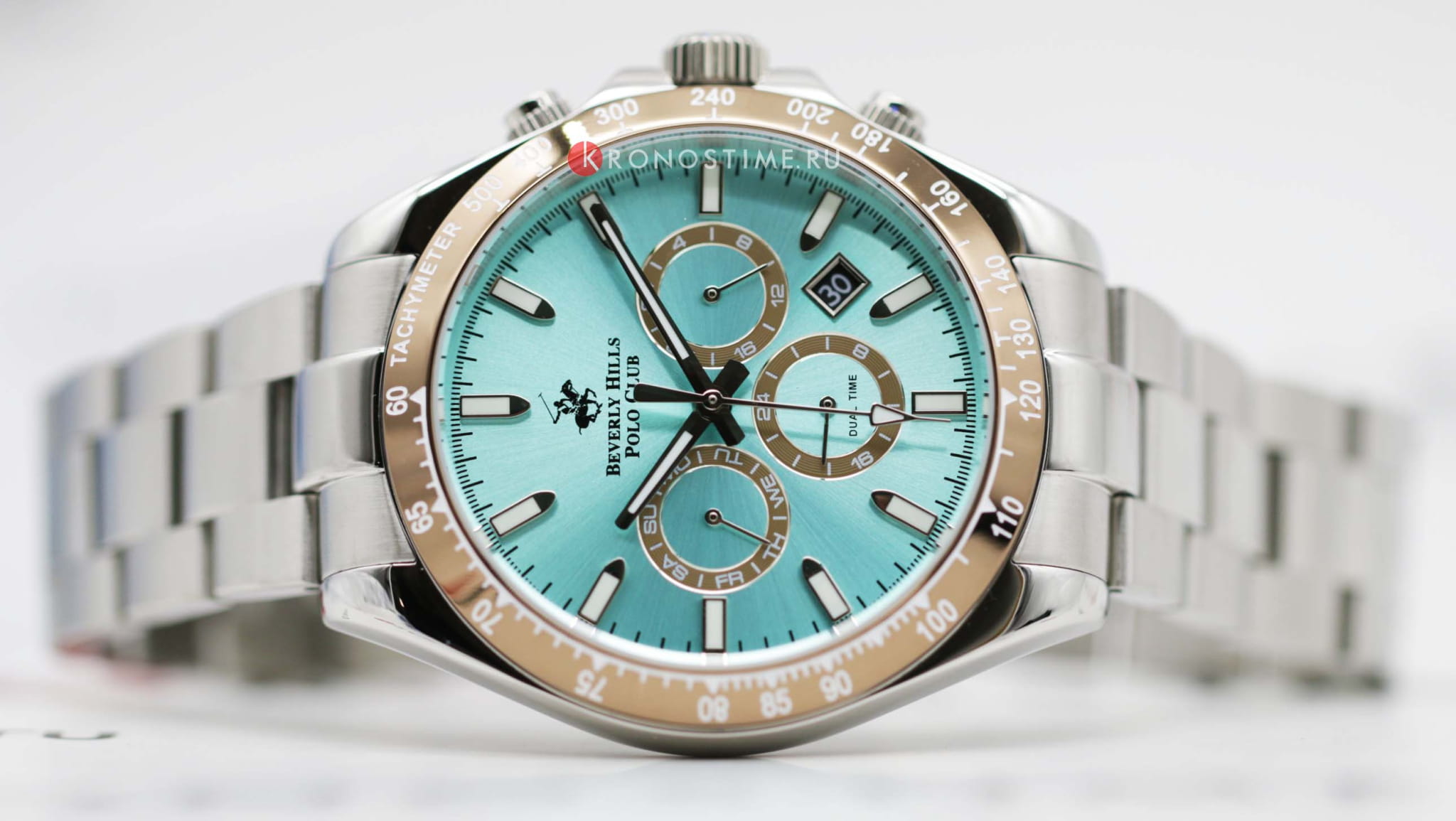 Американские мужские часы Beverly Hills Polo Club BP3127X.301 с минеральным стекломМинеральное стеклоМинеральное стекло представляет собой искусственно выращенный минерал кварца. Такое стекло отличается особой устойчивостью к повреждениям и царапинам. Уступает по некоторым качествам сапфировому стеклу.. Кварцевый механизм высокой точности. Корпус и браслет часов изготовлены из нержавеющей стали. Стрелки и метки с люминесцентным покрытиемЛюминесцентное покрытиеПозволяет считывать показания времени в темноте. Производители наносят на стрелки, часовые индексы, безель или поверхность циферблата светонакопительный состав, дающий холодное свечение.. Окошко даты находится в положении между 4 и 5 часов. Стальной браслет на раскладной застёжкеРаскладная застёжкаТакой тип застёжки используется только на браслетах из металла. Она никогда не раскрывается полностью, происходит разделение на 2 и более частей. Раскладывающая застёжка снизит вероятность потери часов к минимуму.. Класс водозащиты: 50 метров, позволит защитить корпус от случайных брызг или капель дождя. День недели, 24-х часовой формат времени и второй часовой поясВторой часовой поясФункция, позволяющая отображать время двух часовых поясов одновременно. отображены на дополнительных циферблатах. БезельБезельВнешний ободок, закрепляющий стекло. В спортивных часах так называется поворотное кольцо с делениями на циферблате, выполняет роль таймера – замеряет отрезки времени на шкале. Неподвижный безель – элемент декора. Однонаправленно вращающийся безель на дайверских часах позволяет фиксировать моменты погружения и выныривания на поверхность. с IP-покрытиемIP-покрытиеМетод ионного напыления. Демонстрирует повышенную устойчивость к истиранию, окислению и химическим веществам. Под воздействием высокого давления и температуры около 1500°C молекулы металла надёжно соединяются с частицами корпуса часов. и шкалой тахиметраТахиметрРазмеченная шкала, располагается на ободке или безеле часов. Тахиметр позволяет рассчитать скорость на определённом участке пути, расстояние измеряется в километрах или милях..