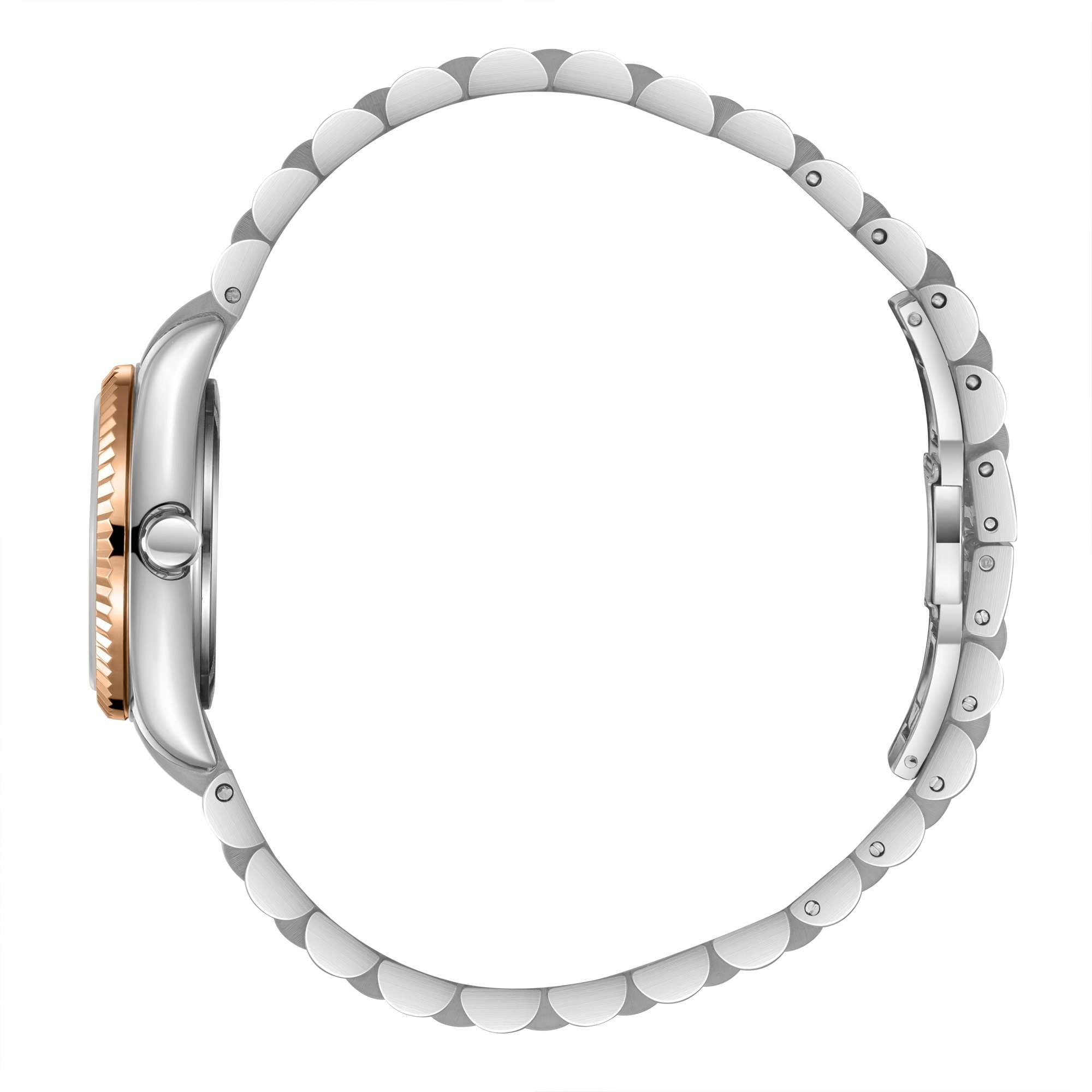 Американские женские часы Beverly Hills Polo Club BP3819X.540 - это стильный женский аксессуар, который сочетает элегантный дизайн и практичность. Корпус выполнен из нержавеющей стали серебристого цвета, диаметром 28 мм, что обеспечивает долговечность и утончённый внешний вид. Надежное минеральное стеклоМинеральное стеклоМинеральное стекло представляет собой искусственно выращенный минерал кварца. Такое стекло отличается особой устойчивостью к повреждениям и царапинам. Уступает по некоторым качествам сапфировому стеклу. с сапфировым покрытием защищает циферблат от царапин и обеспечивает долговечность. Метки в виде римский цифр, на 6 часов инкрустирован синтетический бриллиант. Неподвижный безельБезельВнешний ободок, закрепляющий стекло. В спортивных часах так называется поворотное кольцо с делениями на циферблате, выполняет роль таймера – замеряет отрезки времени на шкале. Неподвижный безель – элемент декора. Однонаправленно вращающийся безель на дайверских часах позволяет фиксировать моменты погружения и выныривания на поверхность. с IP-покрытиемIP-покрытиеМетод ионного напыления. Демонстрирует повышенную устойчивость к истиранию, окислению и химическим веществам. Под воздействием высокого давления и температуры около 1500°C молекулы металла надёжно соединяются с частицами корпуса часов. цвета розового золота. Модель оснащена кварцевым механизмом, обеспечивающим высокую точность хода. Стрелки с люминесцентным покрытиемЛюминесцентное покрытиеПозволяет считывать показания времени в темноте. Производители наносят на стрелки, часовые индексы, безель или поверхность циферблата светонакопительный состав, дающий холодное свечение.. Стальной браслет на застёжке-бабочке с кнопкамиЗастёжка "бабочка"Такой вид застёжки дополняется предохранителями, помогающими избежать случайного раскрытия браслета. Обладают изящным исполнением. обеспечивает комфортное ношение. Водозащита 30 метров позволит защитить корпус от случайных брызг или капель дождя. Эта модель – отличный выбор для тех, кто ищет сочетание стиля, качества и функциональности. Часы станут не только полезным аксессуаром, но и выразительным элементом вашего имиджа.