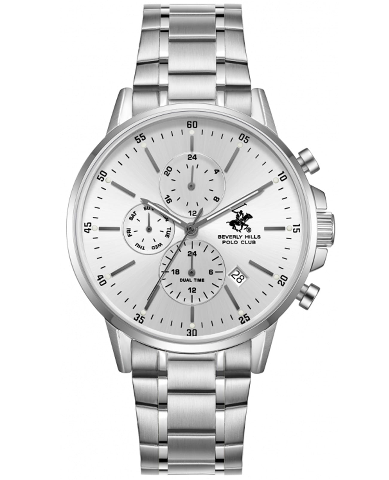 Часы Beverly Hills Polo Club BP3727X.330 — это гармоничное сочетание силы, стиля и современных технологий. Выполненные из высококачественной нержавеющей стали, корпус и браслет придают часам выразительность и утончённую элегантность, а минеральное стеклоМинеральное стеклоМинеральное стекло представляет собой искусственно выращенный минерал кварца. Такое стекло отличается особой устойчивостью к повреждениям и царапинам. Уступает по некоторым качествам сапфировому стеклу., защищающее циферблат, надёжно оберегает его от царапин, сохраняя яркий блеск.