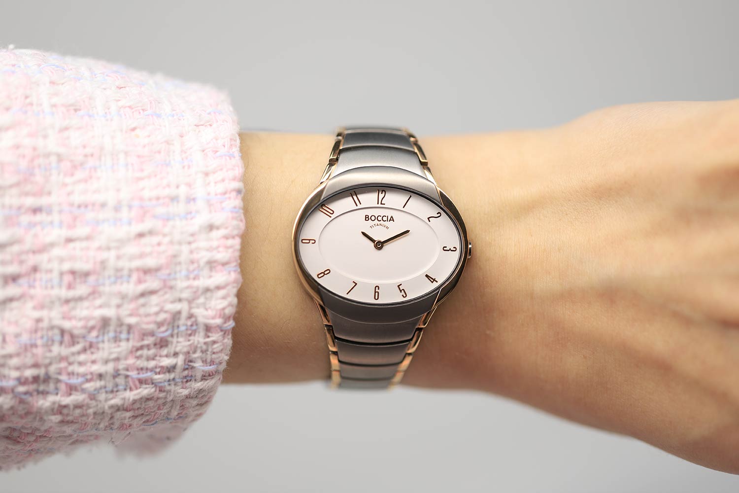 Женские немецкие титановые часы Boccia Titanium 3165-12, кварцевый механизм с высокой точностью. Класс водозащиты: 50 метров, позволит защитить корпус от случайных брызг или капель дождя. Корпус часов изготовлен из титана, цвета.