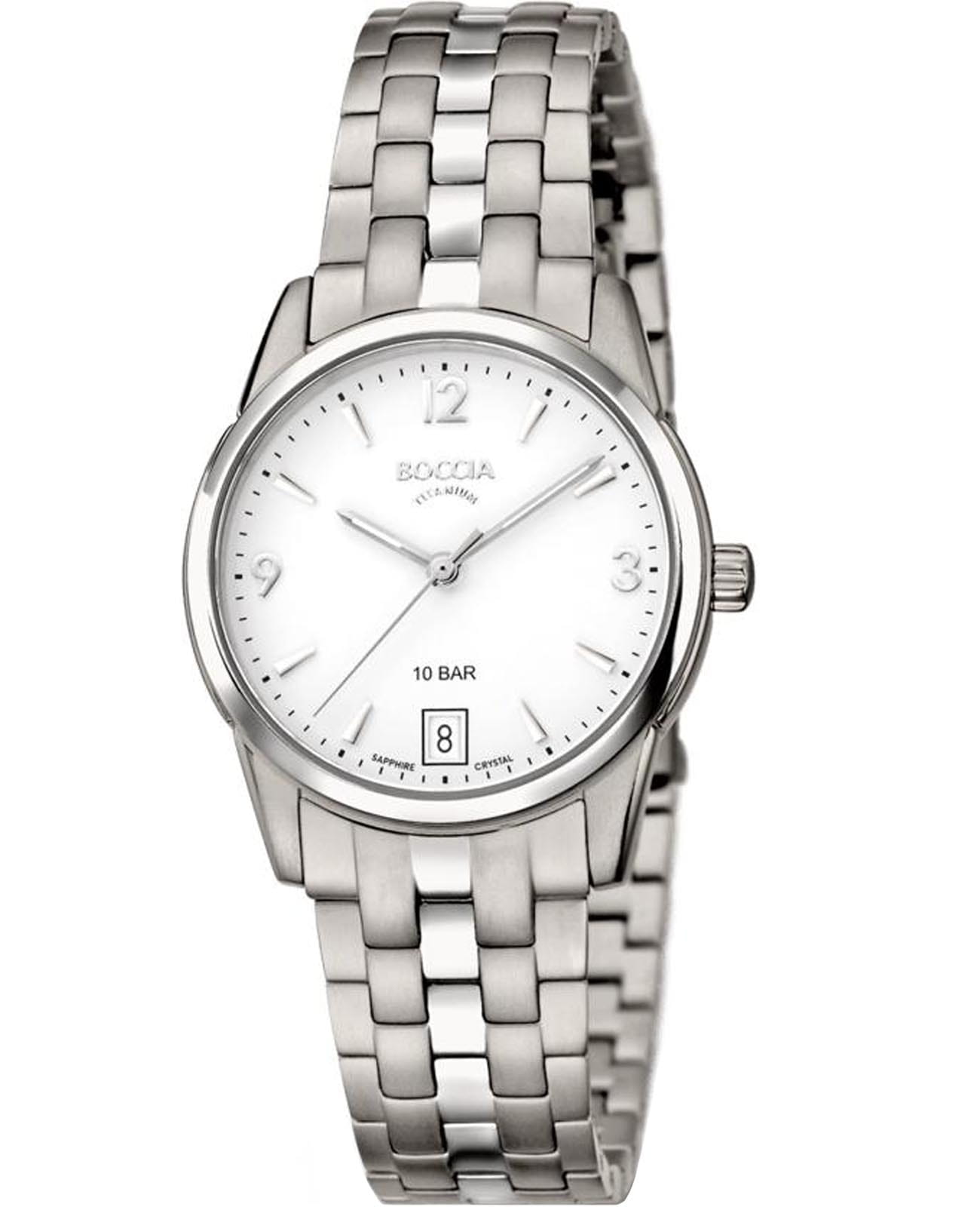 Женские наручные часы Boccia Titanium 3272-03 с надёжным кварцевым механизмом. Корпус и браслет часов изготовлены из титана. Минеральное стеклоМинеральное стеклоМинеральное стекло представляет собой искусственно выращенный минерал кварца. Такое стекло отличается особой устойчивостью к повреждениям и царапинам. Уступает по некоторым качествам сапфировому стеклу. устойчивое к мелким механическим повреждениям. Класс водозащиты: 100 метров, позволит плавать, нырять и заниматься другими водными видами спорта/ Стрелки с люминесцентным покрытиемЛюминесцентное покрытиеПозволяет считывать показания времени в темноте. Производители наносят на стрелки, часовые индексы, безель или поверхность циферблата светонакопительный состав, дающий холодное свечение.. Титановый браслет на раскладной застёжкеРаскладная застёжкаТакой тип застёжки используется только на браслетах из металла. Она никогда не раскрывается полностью, происходит разделение на 2 и более частей. Раскладывающая застёжка снизит вероятность потери часов к минимуму.. Окошко даты находится в положении 6 часов.