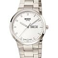Мужские наручные часы Boccia Titanium 3649-01 с надёжным кварцевым механизмом. Сапфировое стеклоСапфировое стеклоПрочный и надёжный материал из кристалла сапфира синтетического происхождения, характеризующийся особой твёрдостью и устойчивостью к царапинам и повреждениям. устойчивое к мелким механическим повреждениям. Корпус и браслет часов изготовлены из титана. Титановый браслет на раскладной застёжкеРаскладная застёжкаТакой тип застёжки используется только на браслетах из металла. Она никогда не раскрывается полностью, происходит разделение на 2 и более частей. Раскладывающая застёжка снизит вероятность потери часов к минимуму.. Класс водозащиты: 50 метров, позволит защитить корпус от случайных брызг или капель дождя. Стрелки и метки с люминесцентным покрытиемЛюминесцентное покрытиеПозволяет считывать показания времени в темноте. Производители наносят на стрелки, часовые индексы, безель или поверхность циферблата светонакопительный состав, дающий холодное свечение.. Окошки дня недели и даты находятся в положении 3 часа.