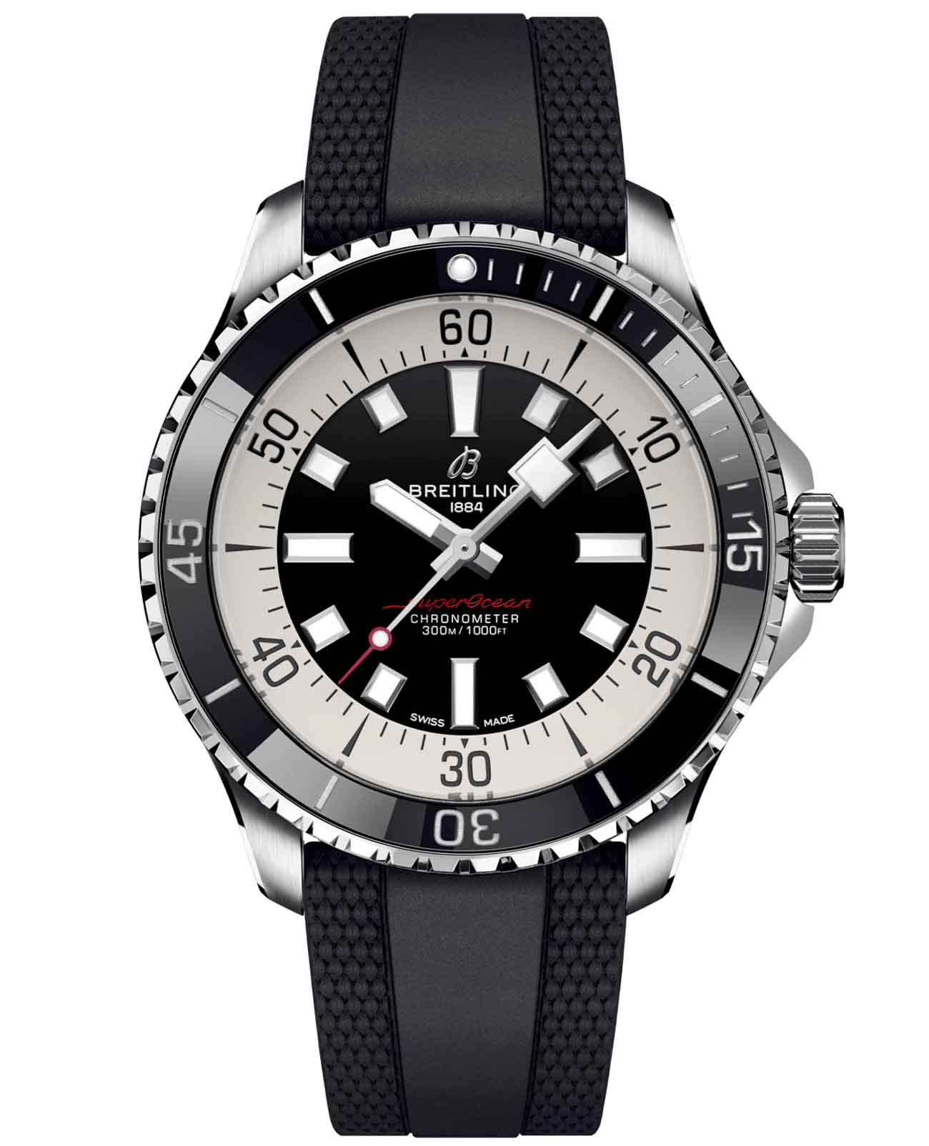 Мужские водонепроницаемые швейцарские часы Breitling Superocean Automatic 44 A17376211B1S1, механический механизм (автоматический калибр) с высокой точностью. Сапфировое стеклоСапфировое стеклоПрочный и надёжный материал из кристалла сапфира синтетического происхождения, характеризующийся особой твёрдостью и устойчивостью к царапинам и повреждениям. устойчивое к появлению царапин, обладающее высокой прозрачностью. Класс водозащиты: 300 метров, позволит плавать, нырять и заниматься другими водными видами спорта. Корпус часов изготовлен из стали. Силиконовый ремешок с раскладной застёжкойРаскладная застёжкаТакой тип застёжки используется только на браслетах из металла. Она никогда не раскрывается полностью, происходит разделение на 2 и более частей. Раскладывающая застёжка снизит вероятность потери часов к минимуму.. Стрелки и метки с люминесцентным покрытиемЛюминесцентное покрытиеПозволяет считывать показания времени в темноте. Производители наносят на стрелки, часовые индексы, безель или поверхность циферблата светонакопительный состав, дающий холодное свечение.. Широкие стрелки и индексы с люминесцентным покрытиемЛюминесцентное покрытиеПозволяет считывать показания времени в темноте. Производители наносят на стрелки, часовые индексы, безель или поверхность циферблата светонакопительный состав, дающий холодное свечение. обеспечивают легкую читаемость под водой. БезельБезельВнешний ободок, закрепляющий стекло. В спортивных часах так называется поворотное кольцо с делениями на циферблате, выполняет роль таймера – замеряет отрезки времени на шкале. Неподвижный безель – элемент декора. Однонаправленно вращающийся безель на дайверских часах позволяет фиксировать моменты погружения и выныривания на поверхность. из стали с керамической инкрустацией, защищенный от царапин, никогда не изнашивается и не выцветает. Лучше всего то, что это больше не просто часы для дайвинга — занимайтесь с ними серфингом, плавайте с ними, заходите с ними в пляжный бар, а затем надевайте их на ужин. Superocean идеально сочетает ностальгию по своему наследию со свежим внешним видом.
