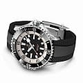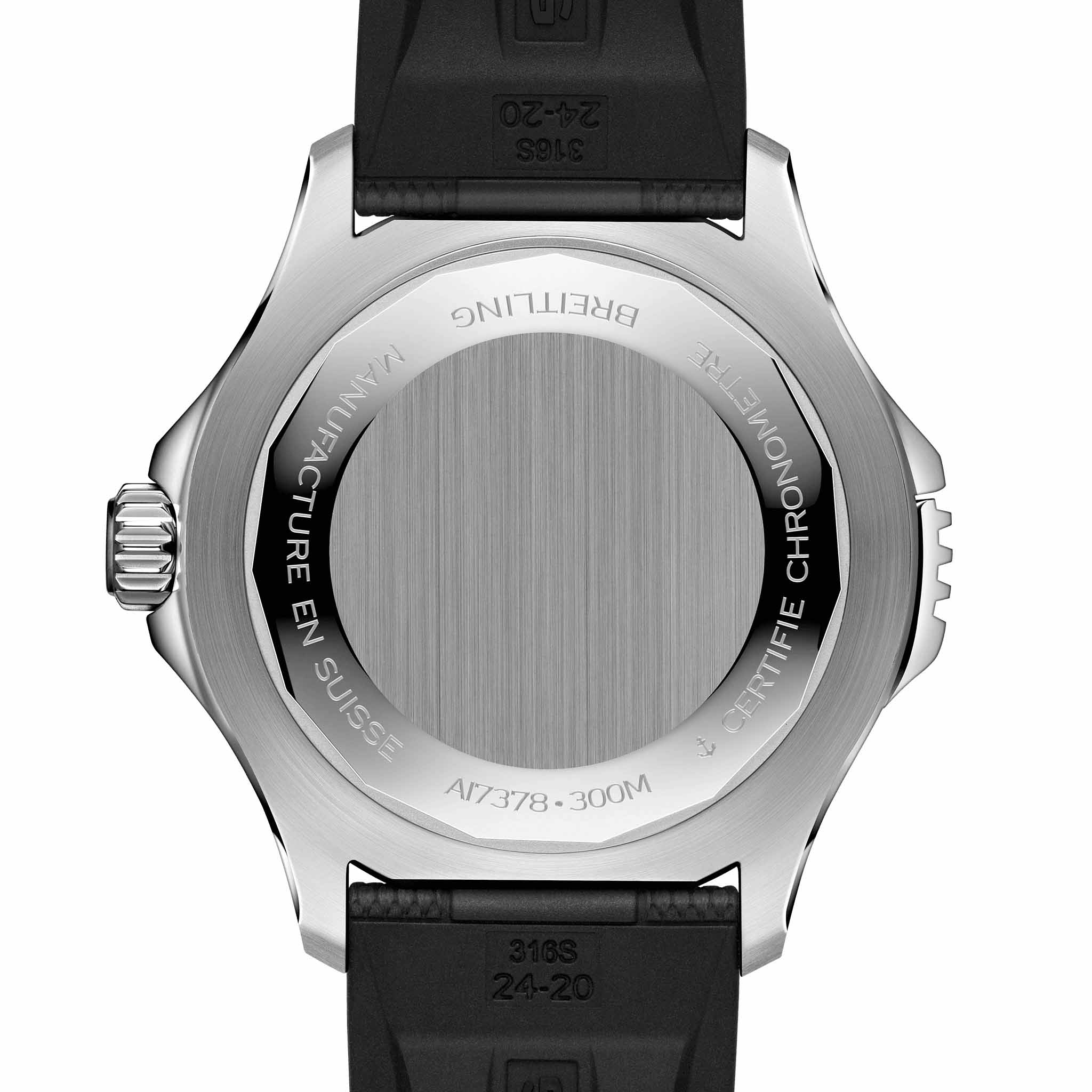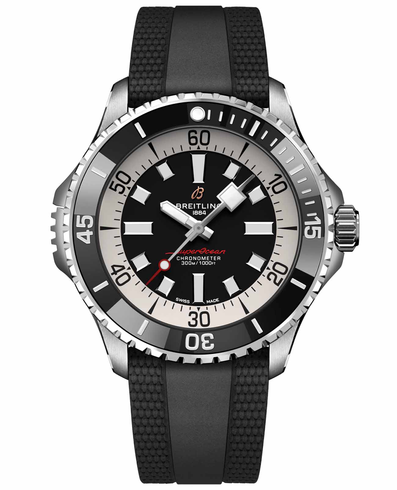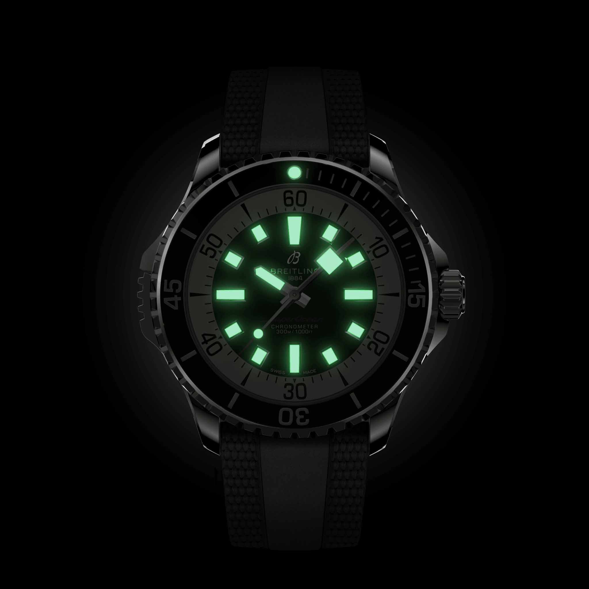 Мужские водонепроницаемые швейцарские часы Breitling Superocean Automatic 46 A17378211B1S1, механический механизм (автоматический калибр) с высокой точностью. Сапфировое стеклоСапфировое стеклоПрочный и надёжный материал из кристалла сапфира синтетического происхождения, характеризующийся особой твёрдостью и устойчивостью к царапинам и повреждениям. устойчивое к появлению царапин, обладающее высокой прозрачностью. Класс водозащиты: 300 метров, позволит плавать, нырять и заниматься другими водными видами спорта. Корпус часов изготовлен из стали. Силиконовый ремешок с раскладной застёжкойРаскладная застёжкаТакой тип застёжки используется только на браслетах из металла. Она никогда не раскрывается полностью, происходит разделение на 2 и более частей. Раскладывающая застёжка снизит вероятность потери часов к минимуму.. Стрелки и метки с люминесцентным покрытиемЛюминесцентное покрытиеПозволяет считывать показания времени в темноте. Производители наносят на стрелки, часовые индексы, безель или поверхность циферблата светонакопительный состав, дающий холодное свечение.. Широкие стрелки и индексы с люминесцентным покрытиемЛюминесцентное покрытиеПозволяет считывать показания времени в темноте. Производители наносят на стрелки, часовые индексы, безель или поверхность циферблата светонакопительный состав, дающий холодное свечение. обеспечивают легкую читаемость под водой. Вращающийся стальной безельБезельВнешний ободок, закрепляющий стекло. В спортивных часах так называется поворотное кольцо с делениями на циферблате, выполняет роль таймера – замеряет отрезки времени на шкале. Неподвижный безель – элемент декора. Однонаправленно вращающийся безель на дайверских часах позволяет фиксировать моменты погружения и выныривания на поверхность. с люминесцентным покрытиемЛюминесцентное покрытиеПозволяет считывать показания времени в темноте. Производители наносят на стрелки, часовые индексы, безель или поверхность циферблата светонакопительный состав, дающий холодное свечение. Superluminova из нержавеющей стали и керамики, защищенный от царапин, никогда не изнашивается и не выцветает.