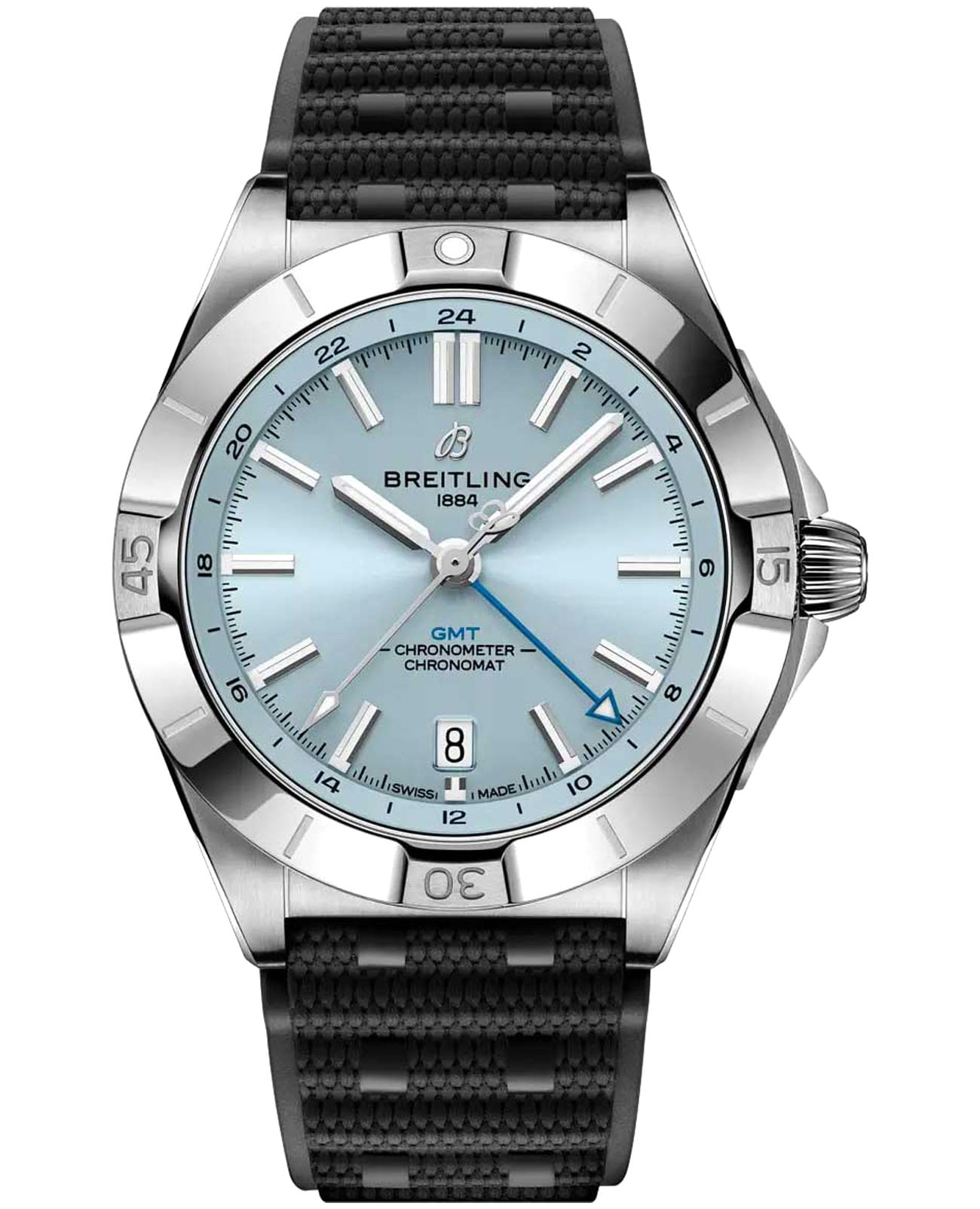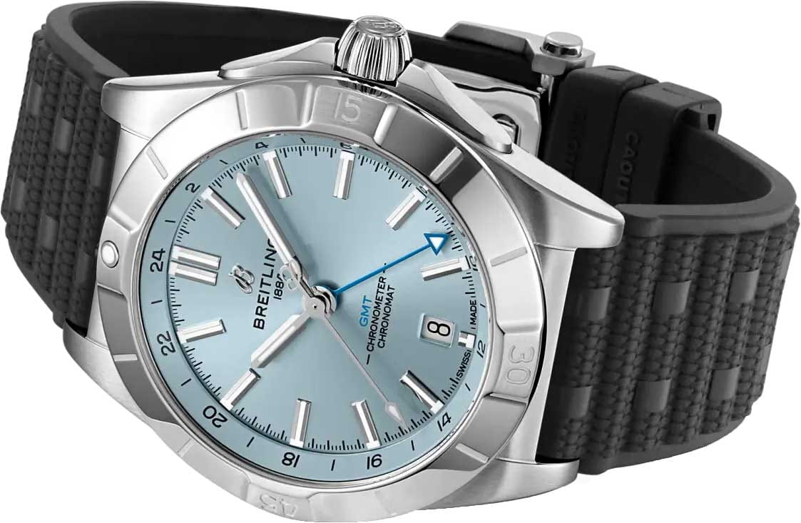 Мужские швейцарские часы Breitling Chronomat Automatic GMT 40 P32398101C1S2, механический механизм (автоматический калибр) с высокой точностью. Часы Chronomat Automatic GMTGMTОтображение времени второго часового пояса.Такая функция особенно актуальна для путешественников и бизнесменов,которые общаются с людьми из разных стран,теперь вы всегда будете знать,какой час у вашего партнёра или близкого человека. 40 - это дань уважения Breitling путешествиям не только благодаря дисплею с двумя часовыми поясами, но и благодаря своей непринужденной эстетике. 24-часовая шкала позволяет пользователю отслеживать второй часовой поясВторой часовой поясФункция, позволяющая отображать время двух часовых поясов одновременно. и с первого взгляда определять, день сейчас или ночь, а заводная головка “луковица” (классическая функция хронометра, получившая название из-за своей рифленой формы купола) позволяет легко регулировать время. Сапфировое стеклоСапфировое стеклоПрочный и надёжный материал из кристалла сапфира синтетического происхождения, характеризующийся особой твёрдостью и устойчивостью к царапинам и повреждениям. с антибликовым покрытиемАнтибликовое покрытиеСлой оксида металла в 0,13-0,3 микрон, благодаря которому стекло часов не бликует и не отражает свет. Антибликовое покрытие уменьшает отражение света в 10 раз, обеспечивая отличную читаемость показателей циферблата. устойчивое к появлению царапин, обладающее высокой прозрачностью. Класс водозащиты: 200 метров, позволит плавать, нырять и заниматься другими водными видами спорта. Корпус часов изготовлен из нержавеющей стали и платины, диаметром 40 мм. Каучуковый ремешок на раскладной застёжкеРаскладная застёжкаТакой тип застёжки используется только на браслетах из металла. Она никогда не раскрывается полностью, происходит разделение на 2 и более частей. Раскладывающая застёжка снизит вероятность потери часов к минимуму. обеспечивает комфортное ношение. Часы имеют сертификат COSCСертификат COSCОфициальный сертификат, подтверждающий то, что часы ходят с особо высокой точностью. Для получения документа часы подвергаются тестовым испытаниям, разработанным швейцарским институтом тестирования хронометров COSC. Допустимая норма для механических часов -4/+6 секунд в день, для кварцевых моделей +/- 0,07 секунд в день., запас хода примерно 42 часа. Стрелки и метки с люминесцентным покрытиемЛюминесцентное покрытиеПозволяет считывать показания времени в темноте. Производители наносят на стрелки, часовые индексы, безель или поверхность циферблата светонакопительный состав, дающий холодное свечение.. Окошко даты находится в положении 6 часов. Известные как “часы на все случаи жизни”, часы Chronomat сейчас актуальны как никогда благодаря практичным размерам GMT 40 и сдержанному стилю.