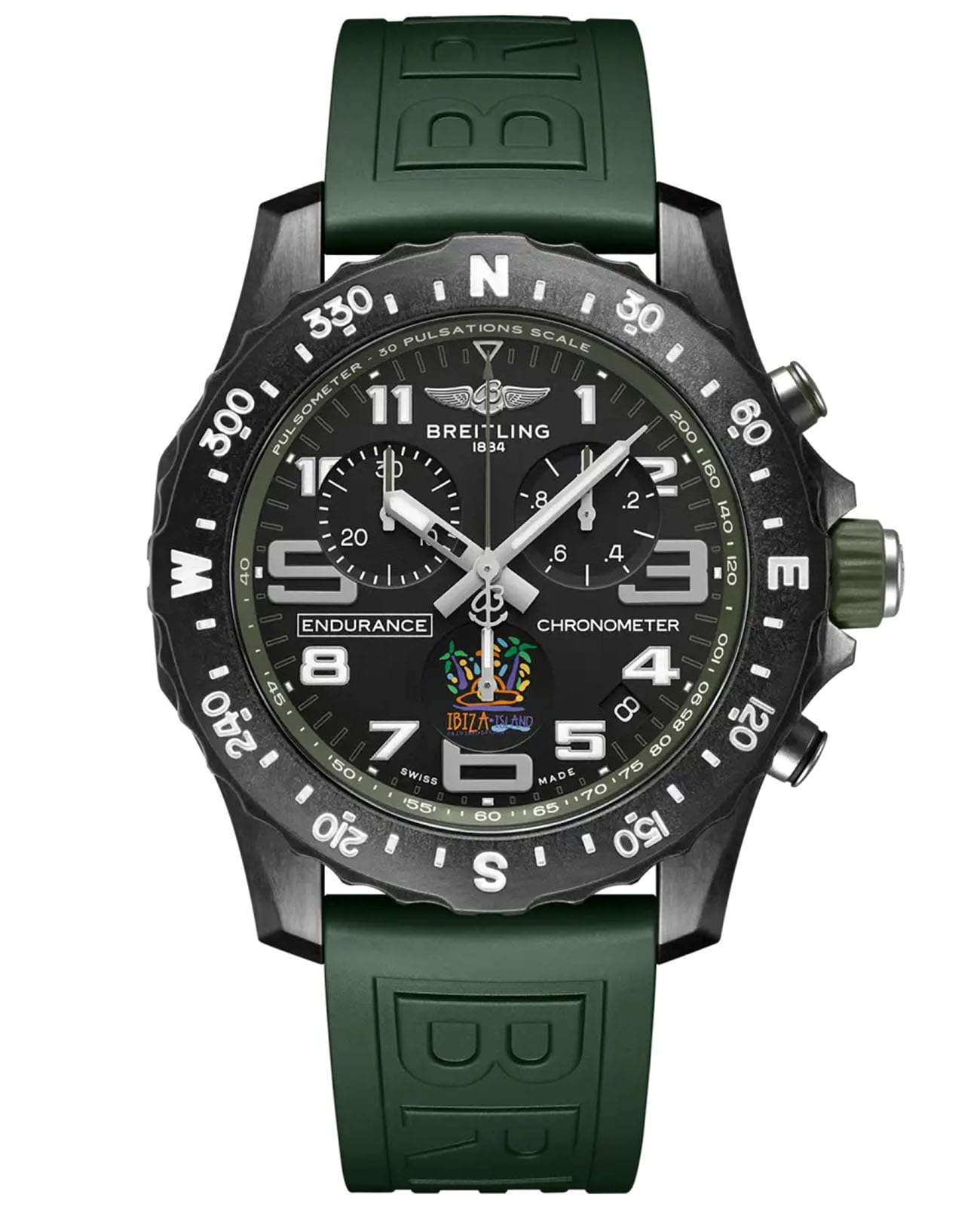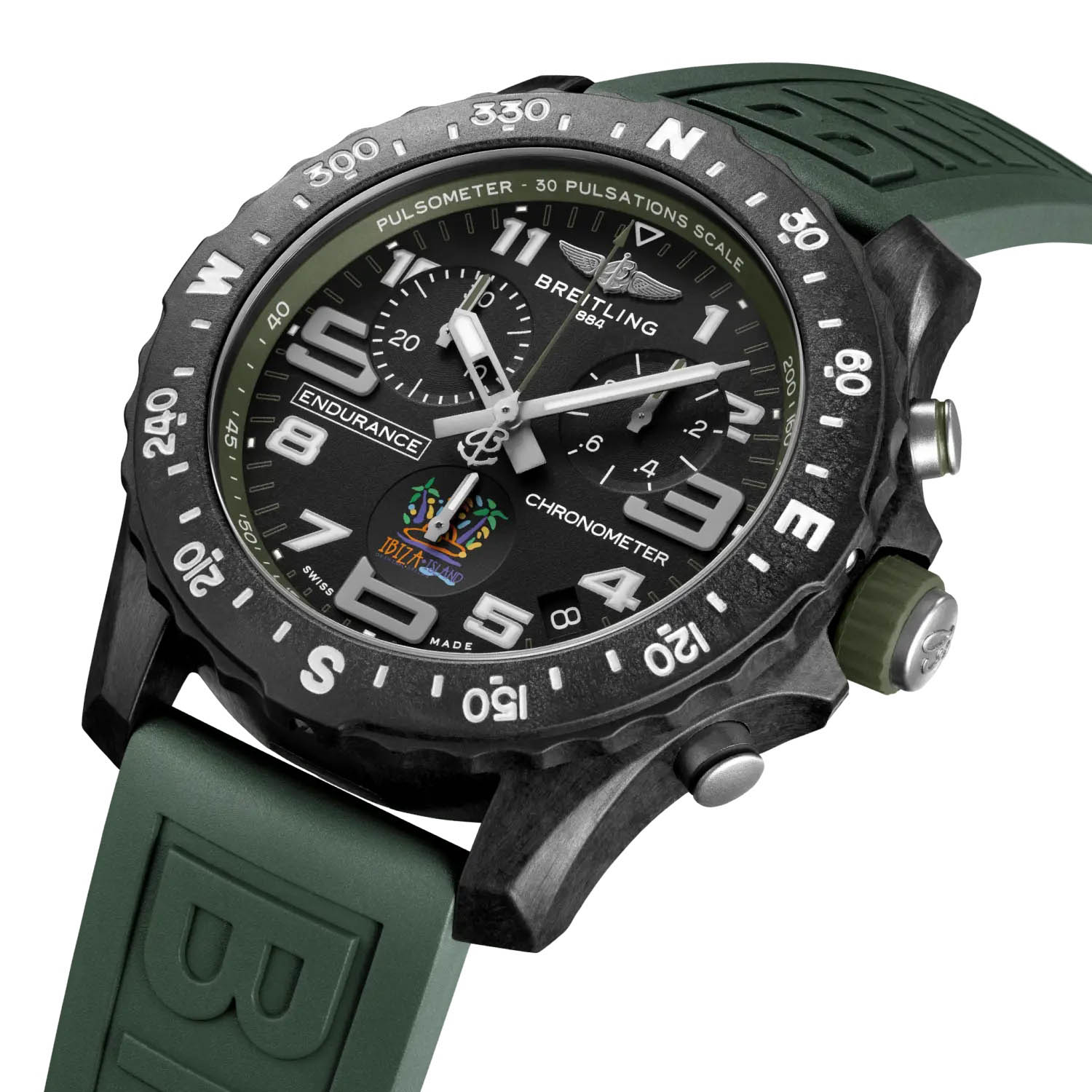 Мужские часы Breitling Endurance Pro — это инновационный аксессуар, разработанный для спортсменов и активных людей. Модель выполнена из эксклюзивного материала Breitlight®, который в 3,3 раза легче титана и в 5,8 раза легче нержавеющей стали. Этот немагнитный, термостойкий и гипоаллергенный материал обладает высокой устойчивостью к царапинам, истиранию и коррозии, а также имеет слегка текстурированную поверхность, подчеркивающую оригинальность дизайна. Циферблат зелёного цвета дополнен двунаправленным безелем со шкалой компаса, а его поверхность защищена сапфировым стекломСапфировое стеклоПрочный и надёжный материал из кристалла сапфира синтетического происхождения, характеризующийся особой твёрдостью и устойчивостью к царапинам и повреждениям. с двусторонним антибликовым покрытиемАнтибликовое покрытиеСлой оксида металла в 0,13-0,3 микрон, благодаря которому стекло часов не бликует и не отражает свет. Антибликовое покрытие уменьшает отражение света в 10 раз, обеспечивая отличную читаемость показателей циферблата., устойчивым к повреждениям. Часы оснащены термокомпенсированным хронографом SuperQuartz™ (калибр Breitling 82), сертифицированным COSC, обеспечивающим исключительную точность. Функции включают отображение времени, секундомер с точностью 1/10 секунды и временем измерения до 30 минут, а также апертура даты на циферблате. Ремешок из каучука шириной 22 мм оснащён стандартной застёжкой из материала Breitlight®, обеспечивающей комфорт и надёжную фиксацию на запястье. Вес изделия составляет 64,8 г, а диаметр корпуса — 44 мм. Эти часы станут универсальным аксессуаром для тех, кто ценит сочетание стиля, функциональности и надёжности — идеальный выбор для повседневной носки и активного образа жизни.