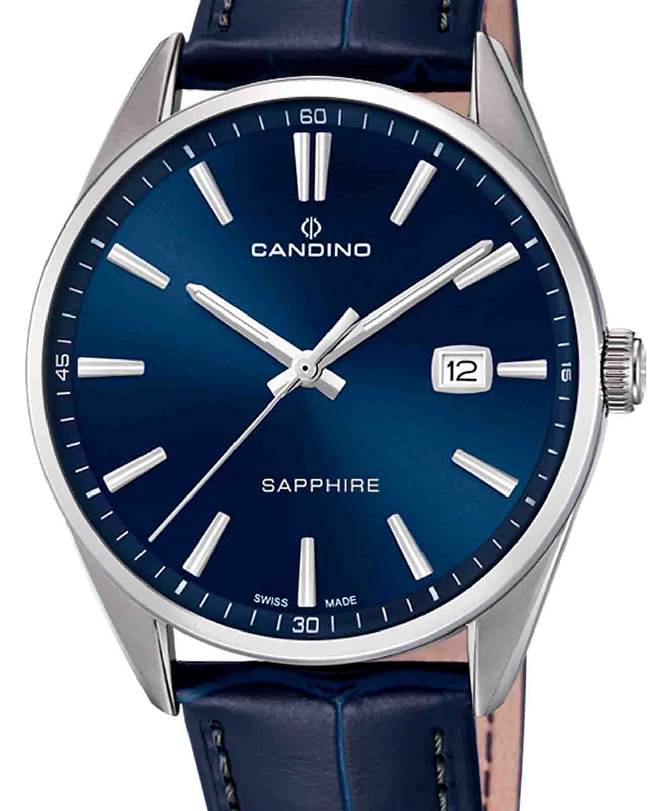 Мужские наручные часы Candino Couple C4622/B сочетают в себе классический дизайн и надежность швейцарского качества. Модель обладает круглым корпусом, изготовленным из нержавеющей стали марки 316L, что обеспечивает высокую устойчивость к коррозии и механическим повреждениям . Корпус оснащен сапфировым стекломСапфировое стеклоПрочный и надёжный материал из кристалла сапфира синтетического происхождения, характеризующийся особой твёрдостью и устойчивостью к царапинам и повреждениям., которое гарантирует защиту от царапин и других внешних воздействий . Часы имеют кожаный ремешок черного цвета, обеспечивающий комфортное ношение в течение дня . Циферблат синего цвета дополнен окном даты, расположенном на позиции «3 часа», что добавляет удобства при повседневном использовании . Часы оснащены кварцевым механизмом, который известен своей точностью и минимальной потребностью в обслуживании. Погрешность хода составляет около 20 секунд в месяц, что гарантирует надежность показаний времени . Водонепроницаемость модели достигает 5 атмосфер (50 метров), что позволяет использовать часы в условиях легкого контакта с водой, например, во время мытья рук или дождя, но не рекомендуется для плавания или дайвинга . Модель Candino Classic C4622/A станет идеальным выбором для ценителей классического стиля и практичности в повседневной жизни.