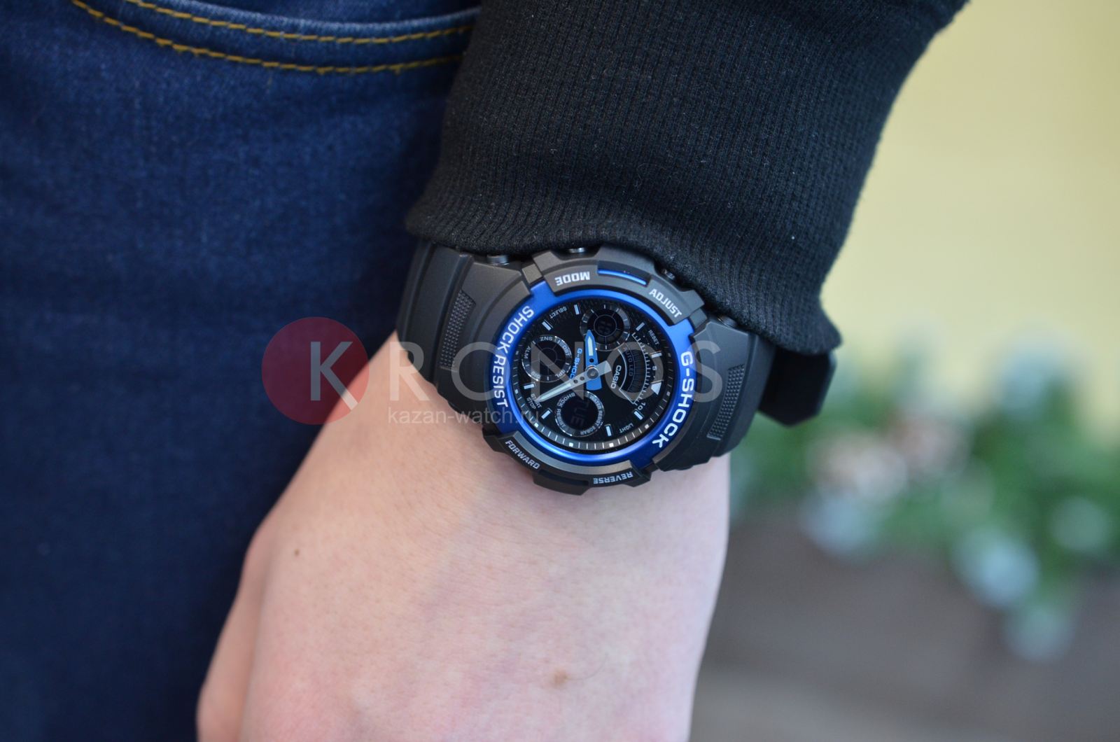 Японские мужские часы AW-591-2AER из популярной коллекции G-Shock выглядят стильно в любой ситуации, спортивный облик модели всегда будет актуален.