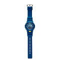 Ярко-синяя модель с голубыми и жёлтыми деталями точно станет запоминающейся деталью вашего образа. Часы получили обновлённый дизайн и уменьшенный противоударный корпусУдаропрочный корпусМеханизм заключён в корпус, выполненный из современных материалов, устойчивых к ударам, механическим повреждениям и падению с высоты: инновационный пластик, карбон, нержавеющая сталь, титан., если сравнивать с моделями серии GA-700. Он выполнен из полимерного пластика, что гарантирует повышенную устойчивость к ударам, повреждениям, падению с высоты. Японский кварцевый калибр с точностью хода +/- 15 секунд в месяц. Срок службы батарейки - 3 года. Функция выключения и включения звука кнопок. Стрелки с люминесцентным покрытиемЛюминесцентное покрытиеПозволяет считывать показания времени в темноте. Производители наносят на стрелки, часовые индексы, безель или поверхность циферблата светонакопительный состав, дающий холодное свечение.. Двойная светодиодная подсветкаСветодиодная подсветкаСветодиодная или LED-подсветка обеспечивает появление яркого холодного свечения за счёт LED-элементов - маленьких лампочек. Они потребляют минимальное количество энергии, чаще всего можно встретить 1 светодиод, в нижней части циферблата.. Водозащита 20 бар. Минеральное стекло. Полимерный браслет. Секундомер, таймер обратного отсчёта, мировое времяМировое время Полезное часовое усложнение, отображающее время в основных городах и известных областях по всему миру, оно связано с часовыми поясами, удобно для путешественников и бизнесменов. , 5 ежедневных будильников, автоматический календарь. Габариты: 54,1 x 48,6 x 15,5 мм.