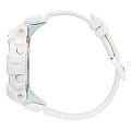 Наручные часы в белоснежном исполнении идеально смотрятся на запястье, они станут грамотным дополнением к повседневному или спортивному стилю одежды. Они оснащены высокоточным шагомером с измерением количества шагов от 0 до 999999, в мобильном приложении G-Shock Connected Phone можно хранить данные физической активности и устанавливать ежедневную норму, это позволяет осуществить технология BluetoothBluetoothСовременная технология, позволяющая синхронизировать часы с телефоном и переносить данные. Часы с Bluetooth расширяют возможности вашего смартфона и делают его использование ещё более удобным.. Японский кварцевый калибр. Эксплуатационный срок батарейки составляет 3 года. Надёжный противоударный корпусУдаропрочный корпусМеханизм заключён в корпус, выполненный из современных материалов, устойчивых к ударам, механическим повреждениям и падению с высоты: инновационный пластик, карбон, нержавеющая сталь, титан. из полимерного пластика. Минеральное стекло устойчиво к царапинам. Двойная подсветка: стрелки с люминесцентным покрытиемЛюминесцентное покрытиеПозволяет считывать показания времени в темноте. Производители наносят на стрелки, часовые индексы, безель или поверхность циферблата светонакопительный состав, дающий холодное свечение., циферблат подсвечивается светодиодомСветодиодная подсветкаСветодиодная или LED-подсветка обеспечивает появление яркого холодного свечения за счёт LED-элементов - маленьких лампочек. Они потребляют минимальное количество энергии, чаще всего можно встретить 1 светодиод, в нижней части циферблата.. Водостойкость до 20 бар. Мировое времяМировое время Полезное часовое усложнение, отображающее время в основных городах и известных областях по всему миру, оно связано с часовыми поясами, удобно для путешественников и бизнесменов. , таймер, автоматический календарь до 2099 года, будильник, хронографХронографФункция позволяет измерять отрезки времени с особой точностью: часы, минуты, секунды. Верным признаком хронографа является наличие на циферблате 3 дополнительных окошек-счётчиков., секундомер. Габариты: 54,1 x 48,6 x 15,5 мм.