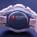 Персиковый аксессуар в пастельной расцветке наделён противоударным корпусомУдаропрочный корпусМеханизм заключён в корпус, выполненный из современных материалов, устойчивых к ударам, механическим повреждениям и падению с высоты: инновационный пластик, карбон, нержавеющая сталь, титан. из полимерного пластика, отражающего удары. Высокая водонепроницаемость до 20 бар позволяет плавать. Часы оснащены лунным календарём и датчиком приливов, что позволяет вычислить оптимальный день для серфинга. Японский кварцевый калибр. Гибкий полимерный ремешок-амортизатор. Циферблат с электролюминесцентной подсветкойЭлектролюминесцентная подсветкаЭлектролюминесцентная панель устанавливается под ЖК-экраном часов, при нажатии кнопки электричество преобразуется в свет за счёт подачи напряжения на атомы фосфора, такой тип подсветки позволяет освещать весь циферблат.. Минеральное стекло. Вечный календарьВечный календарьКлассическое часовое усложнение, представляющее собой календарь, рассчитанный на несколько лет вперёд (стандартно – до 2099 года). Определяет текущую дату, день недели, месяц., будильник, мировое времяМировое время Полезное часовое усложнение, отображающее время в основных городах и известных областях по всему миру, оно связано с часовыми поясами, удобно для путешественников и бизнесменов. – 48 городов, таймер, хронографХронографФункция позволяет измерять отрезки времени с особой точностью: часы, минуты, секунды. Верным признаком хронографа является наличие на циферблате 3 дополнительных окошек-счётчиков., яхт-таймер. Габариты: 44,9 x 43 x 12,9 мм.