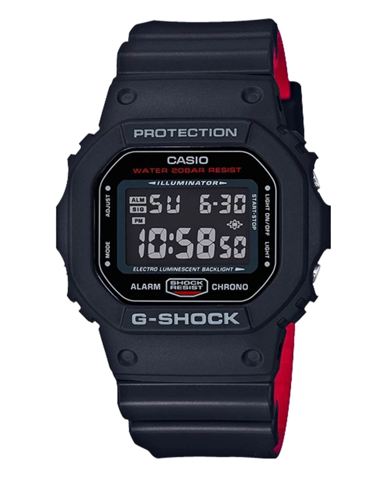 Японские мужские часы-хронографХронографФункция позволяет измерять отрезки времени с особой точностью: часы, минуты, секунды. Верным признаком хронографа является наличие на циферблате 3 дополнительных окошек-счётчиков. Casio G-Shock DW-5600UHR-1DR. Силуэт данного корпуса давно стал классикой и является одним из самых узнаваемых в мире наручных часов. Прекрасный аксессуар на каждый день, который дополнит любой из ваших образов. Корпус изготовлен из полимерного материала. Минеральное стеклоМинеральное стеклоМинеральное стекло представляет собой искусственно выращенный минерал кварца. Такое стекло отличается особой устойчивостью к повреждениям и царапинам. Уступает по некоторым качествам сапфировому стеклу. устойчивое к появлению царапин, обладающее высокой прозрачностью. Светодиодная подсветкаСветодиодная подсветкаСветодиодная или LED-подсветка обеспечивает появление яркого холодного свечения за счёт LED-элементов - маленьких лампочек. Они потребляют минимальное количество энергии, чаще всего можно встретить 1 светодиод, в нижней части циферблата. (Super Illuminator), послесвечение. 12/24-часовой формат. вечный календарьВечный календарьКлассическое часовое усложнение, представляющее собой календарь, рассчитанный на несколько лет вперёд (стандартно – до 2099 года). Определяет текущую дату, день недели, месяц.. СекундомерСекундомерСекундоме́р — прибор, способный измерять интервалы времени с точностью до долей секунды.. ТаймерТаймерОтсчитывает секунды в обратном направлении в заданном интервале времени.. Часовой сигнал времени. Многофункциональный будильник. Оповещение о вспышке мигает с зуммером, который сигнализирует о тревогах, сигналах часового времени, сигнале таймера обратного отсчета времени. Класс водозащиты: 200 метров, позволит плавать, нырять и заниматься другими водными видами спорта. Ремешок из полимерного материала на стандартной застежке.