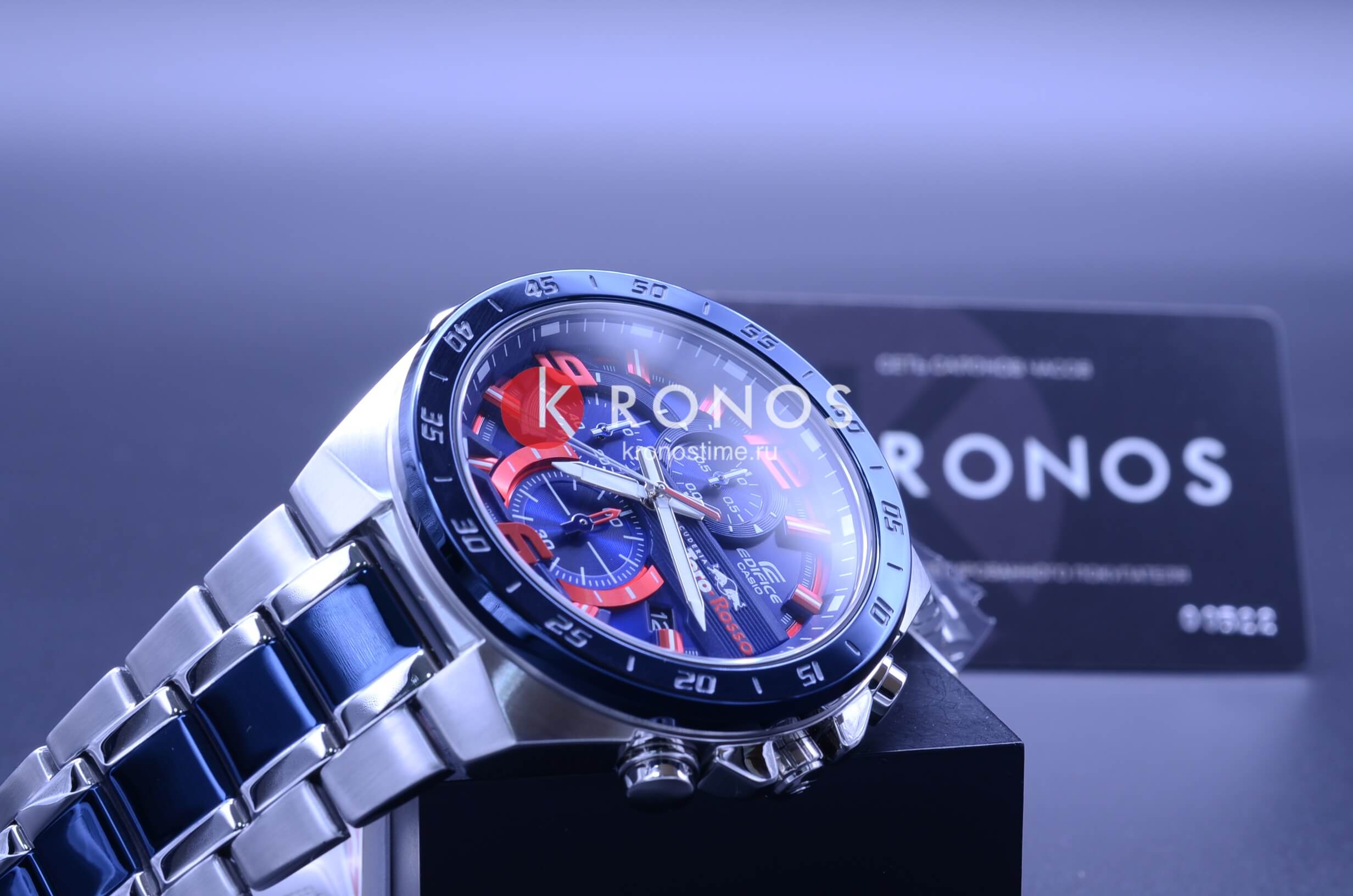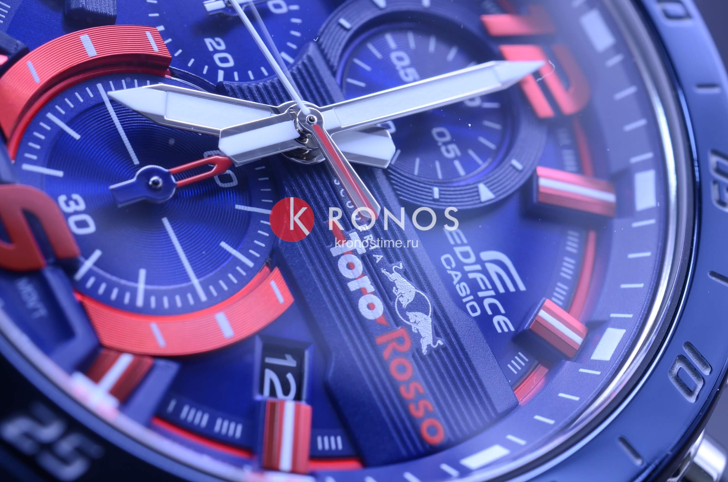 Японские мужские часы Limited Edition из автомобильной коллекции Edifice отличаются динамичным экстерьером, выпуск посвящён знаменитой команде Формулы-1 Scuderia Toro Rosso.