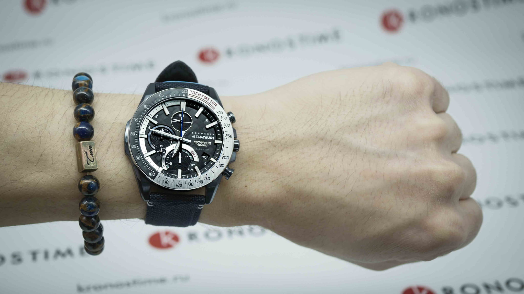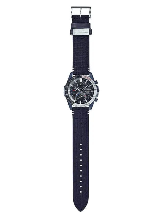 Фантастическая модель EQB-1000AT-1AER Edifice совместно с итальянской гоночной командой Формулы-1 Scuderia AlphaTauri из серии EQB-1000 выпустили модель в корпусе из стали на текстильном ремешке. Часы основаны на технологии Touch Solar, оснащены расширенными функциональными возможностями: Bluetooth нового поколения с низким потреблением энергии, автоматический календарь, хронограф , секундомер, индикатор последнего круга дистанции Last Lap Indicator, мировое время. Модель комплектуется надёжным браслетом из нержавеющей стали. Заводная головка с защитой. Ударопрочный корпус, сапфировое стекло с антибликовым покрытием. Водонепроницаемость WR 100. Подсветка Neobrite . Габариты: 49,9 x 45,6 x 8,9 мм.