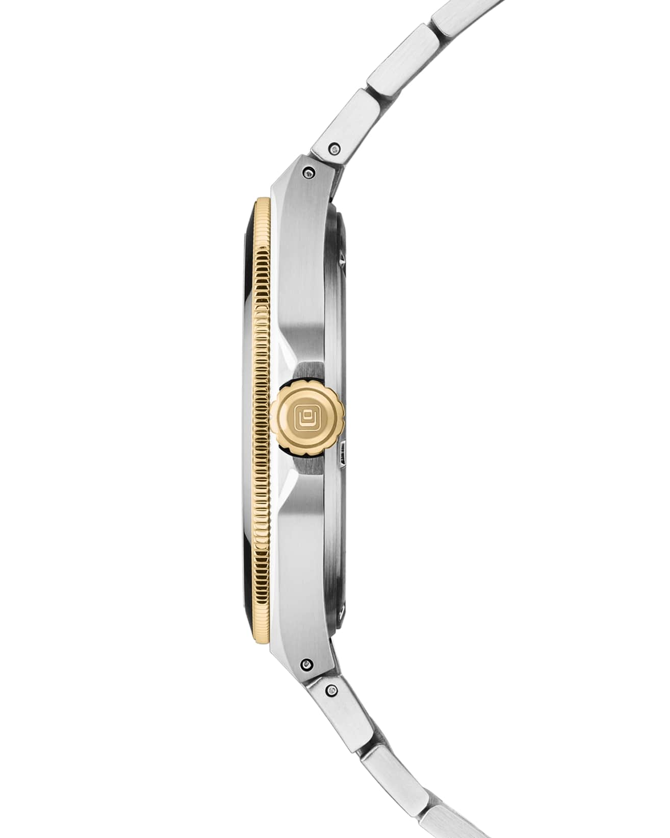 Cover CO213.04 – элегантные мужские часы, сочетающие классический дизайн и современные технологии. Корпус диаметром 41 мм выполнен из нержавеющей стали 316L, что обеспечивает прочность и долговечность. БезельБезельВнешний ободок, закрепляющий стекло. В спортивных часах так называется поворотное кольцо с делениями на циферблате, выполняет роль таймера – замеряет отрезки времени на шкале. Неподвижный безель – элемент декора. Однонаправленно вращающийся безель на дайверских часах позволяет фиксировать моменты погружения и выныривания на поверхность. с PVD-покрытиемPVDУльтратонкое покрытие наносится в технике вакуумного напыления, сочетает в себе нитрид титана особой прочности со слоем золота или оксида хрома. Несёт в себе декоративную или защитную функцию.. Циферблат с чёткими часовыми метками и стрелками, покрытыми люминесцентным покрытиемЛюминесцентное покрытиеПозволяет считывать показания времени в темноте. Производители наносят на стрелки, часовые индексы, безель или поверхность циферблата светонакопительный состав, дающий холодное свечение., гарантирует отличную читаемость в любых условиях, а его поверхность защищена сапфировым стекломСапфировое стеклоПрочный и надёжный материал из кристалла сапфира синтетического происхождения, характеризующийся особой твёрдостью и устойчивостью к царапинам и повреждениям., устойчивым к царапинам. Часы оснащены швейцарским кварцевым механизмом, обеспечивающим точный ход и надёжность. Браслет из нержавеющей стали оснащён раскладной застёжкойРаскладная застёжкаТакой тип застёжки используется только на браслетах из металла. Она никогда не раскрывается полностью, происходит разделение на 2 и более частей. Раскладывающая застёжка снизит вероятность потери часов к минимуму., обеспечивающей удобную и надёжную фиксацию на запястье. Водонепроницаемость до 100 метров, позволит плавать, нырять и заниматься другими водными видами спорта.