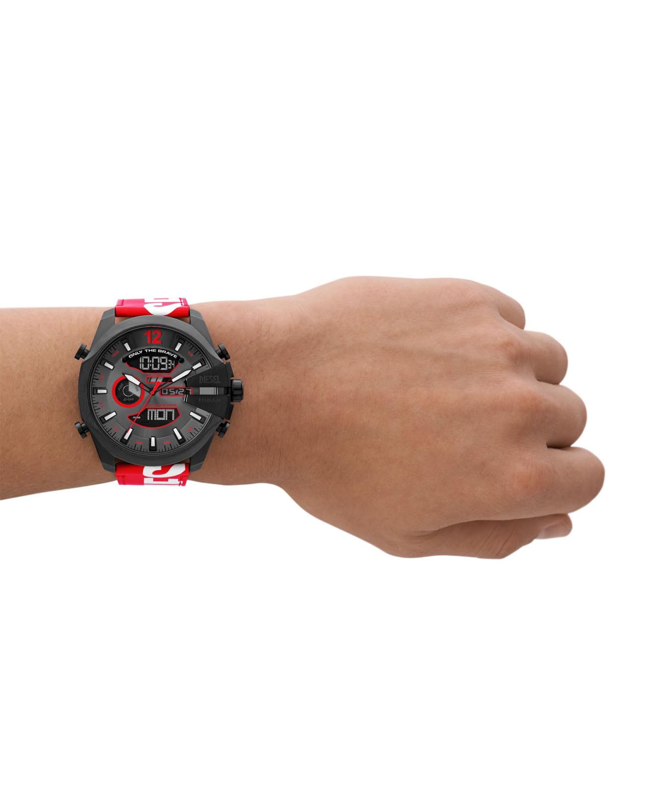 Наручные часы-хронографХронографФункция позволяет измерять отрезки времени с особой точностью: часы, минуты, секунды. Верным признаком хронографа является наличие на циферблате 3 дополнительных окошек-счётчиков. с секундомеромСекундомерСекундоме́р — прибор, способный измерять интервалы времени с точностью до долей секунды. Diesel Mega Chief DZ4647 с надёжным кварцевым механизмом. Корпус часов изготовлен из нержавеющей стали с IP-покрытиемIP-покрытиеМетод ионного напыления. Демонстрирует повышенную устойчивость к истиранию, окислению и химическим веществам. Под воздействием высокого давления и температуры около 1500°C молекулы металла надёжно соединяются с частицами корпуса часов.. Кожаный браслет на стандартной застёжке. Стрелки и метки с люминесцентным покрытиемЛюминесцентное покрытиеПозволяет считывать показания времени в темноте. Производители наносят на стрелки, часовые индексы, безель или поверхность циферблата светонакопительный состав, дающий холодное свечение.. Минеральное стеклоМинеральное стеклоМинеральное стекло представляет собой искусственно выращенный минерал кварца. Такое стекло отличается особой устойчивостью к повреждениям и царапинам. Уступает по некоторым качествам сапфировому стеклу. устойчивое к мелким механическим повреждениям. Класс водозащиты: 100 метров, позволит плавать, нырять и заниматься другими водными видами спорта. Функции календаря и цифрового отображения времени вынесены на жк-дисплеи.