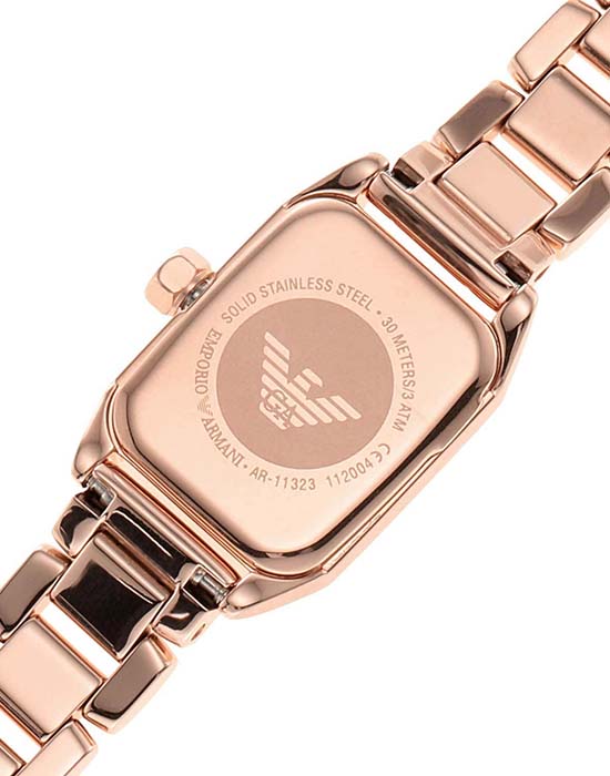 Женские итальянские часы Emporio Armani AR11323, кварцевый механизм с высокой точностью. Класс водозащиты: 30 метров, позволит защитить корпус от случайных брызг или капель дождя. Корпус часов изготовлен из стали, золотистого цвета.
