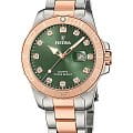 Яркий стиль и функциональность этих часов придутся по душе активной девушке. Кварцевый механизм с высокой точностью. Минеральное стеклоМинеральное стеклоМинеральное стекло представляет собой искусственно выращенный минерал кварца. Такое стекло отличается особой устойчивостью к повреждениям и царапинам. Уступает по некоторым качествам сапфировому стеклу. устойчивое к появлению царапин, обладающее высокой прозрачностью. Циферблат выполнен по технологии Sunray (солнечные лучи). Класс водозащиты: 100 метров, позволит плавать, нырять и заниматься другими водными видами спорта. Корпус часов изготовлен из нержавеющей стали. БезельБезельВнешний ободок, закрепляющий стекло. В спортивных часах так называется поворотное кольцо с делениями на циферблате, выполняет роль таймера – замеряет отрезки времени на шкале. Неподвижный безель – элемент декора. Однонаправленно вращающийся безель на дайверских часах позволяет фиксировать моменты погружения и выныривания на поверхность. c IP-покрытиемIP-покрытиеМетод ионного напыления. Демонстрирует повышенную устойчивость к истиранию, окислению и химическим веществам. Под воздействием высокого давления и температуры около 1500°C молекулы металла надёжно соединяются с частицами корпуса часов.. Браслет с частичным IP-покрытиемIP-покрытиеМетод ионного напыления. Демонстрирует повышенную устойчивость к истиранию, окислению и химическим веществам. Под воздействием высокого давления и температуры около 1500°C молекулы металла надёжно соединяются с частицами корпуса часов..