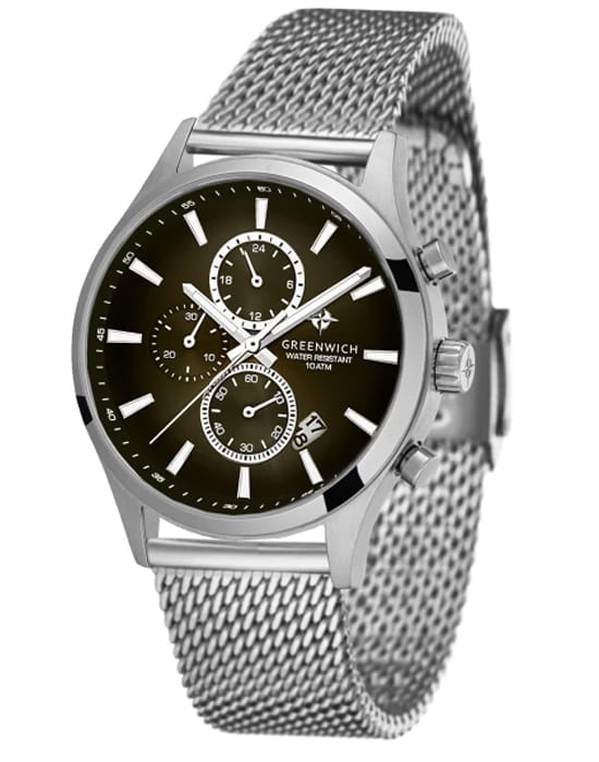 Мужские наручные часы Greenwich GW 053.19.30 c хронографомХронографФункция позволяет измерять отрезки времени с особой точностью: часы, минуты, секунды. Верным признаком хронографа является наличие на циферблате 3 дополнительных окошек-счётчиков. представляют собой классический вариант для повседневной носки. Циферблат украшается брендовым логотипом, изображающим Розу Ветров. Эмблема мореплавательского духа символизирует удачу, стремление достигнуть поставленной цели. Часы характеризуются традиционными формами, лаконичным исполнением, что делает модель элегантным дополнением к деловому костюму. Надёжный корпус из нержавеющей стали спасает японский механизм от повреждений и ударов. Минеральное стеклоМинеральное стеклоМинеральное стекло представляет собой искусственно выращенный минерал кварца. Такое стекло отличается особой устойчивостью к повреждениям и царапинам. Уступает по некоторым качествам сапфировому стеклу. устойчивое к мелким механическим повреждениям.
