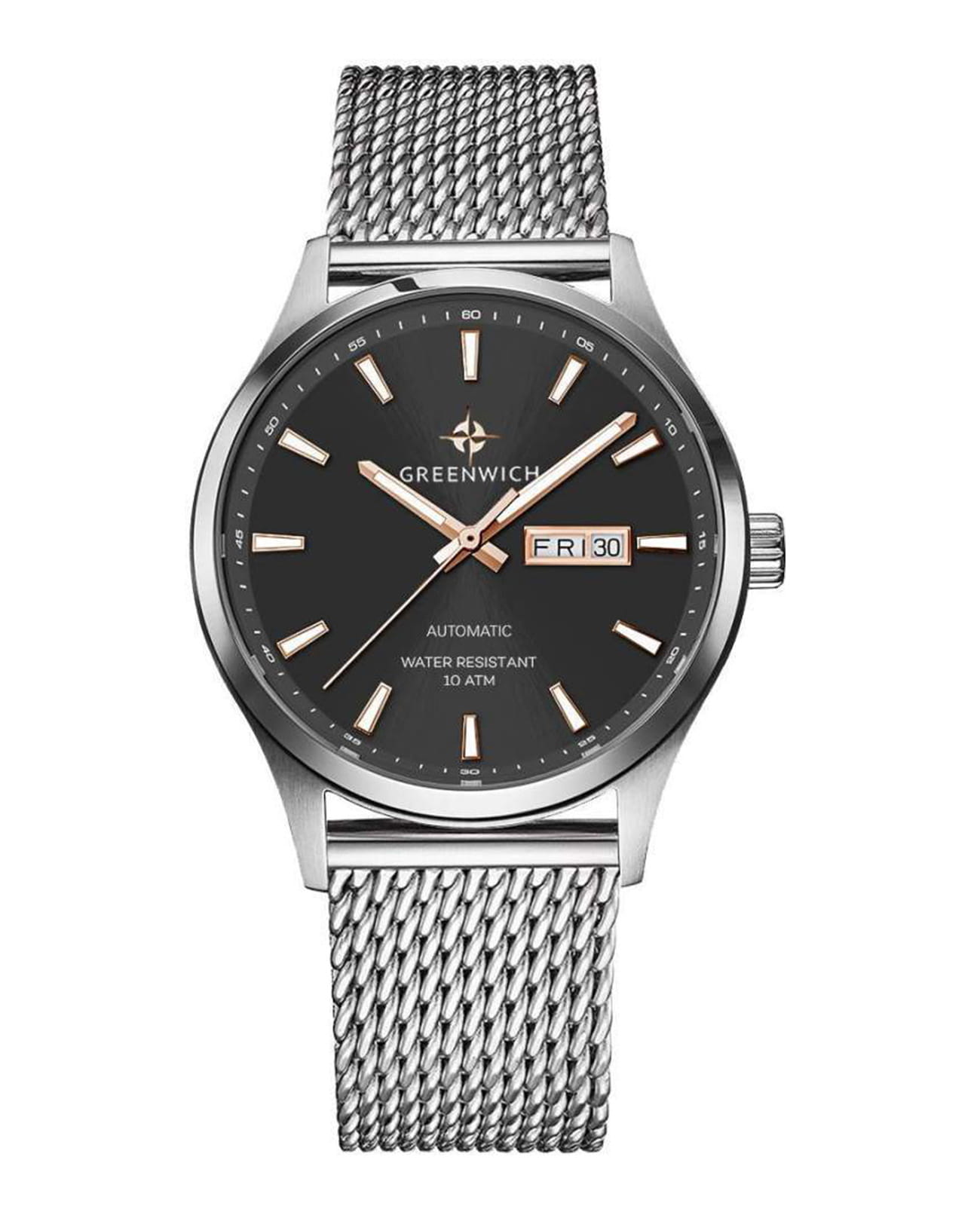 Мужские механические часы с металлическим браслетом Greenwich GW 054.19.34, механический механизм (автоматический калибр) с высокой точностью. Класс водозащиты: 100 метров, позволит плавать, нырять и заниматься другими водными видами спорта. Корпус часов изготовлен из стали, серебристого цвета.