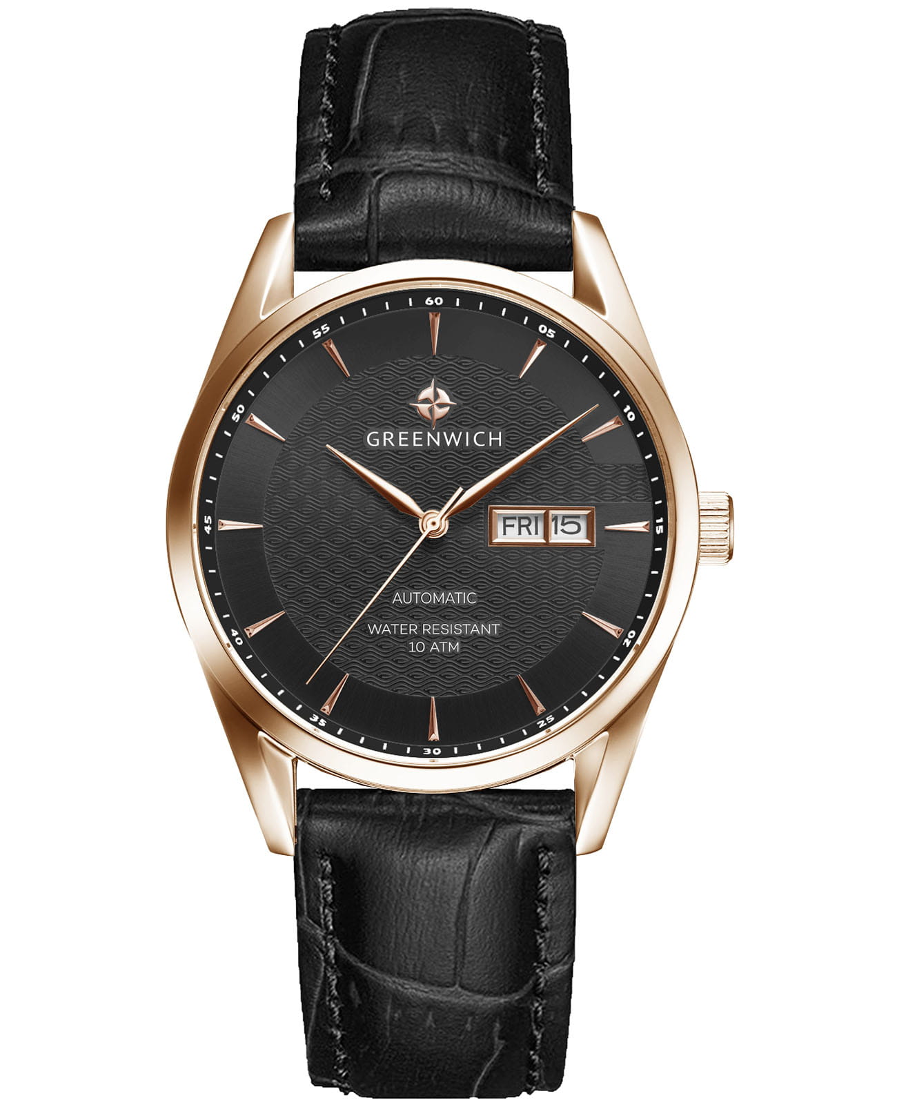 Мужские часы с минеральным стекломМинеральное стеклоМинеральное стекло представляет собой искусственно выращенный минерал кварца. Такое стекло отличается особой устойчивостью к повреждениям и царапинам. Уступает по некоторым качествам сапфировому стеклу. Greenwich Good Luck Classic GW 074.41.31, представляют собой классический вариант для повседневной носки. В центральной части циферблата — отличительная черта моделей этой серии: гильоше, объемные линии которого напоминают волны. Обратите внимание на форму пластины, где крепятся накладные риски: она сделана в форме латинской буквы G, первой буквы в названии бренда. Часы характеризуются традиционными формами, лаконичным исполнением, что делает модель элегантным дополнением к деловому костюму. Сквозь прозрачную заднюю крышку вы увидите детали механизма TMI с декорированным ротором: на нем выгравировано изображение символа английских моряков — парусника. Ремешок на стандартной застёжке выполнен из натуральной кожи с прошивкой в тон. Дизайн, актуальный для любого современного образа, и надежность используемых материалов делают автоматические часы Greenwich удобным и стильным аксессуаром на каждый день. Окошко даты и дня недели находится в положении 3 часа. Класс водозащиты: 100 метров, позволит плавать, нырять и заниматься другими водными видами спорта. Корпус с PVD-покрытиемPVDУльтратонкое покрытие наносится в технике вакуумного напыления, сочетает в себе нитрид титана особой прочности со слоем золота или оксида хрома. Несёт в себе декоративную или защитную функцию..