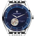 Мужские механические часы с минеральным стекломМинеральное стеклоМинеральное стекло представляет собой искусственно выращенный минерал кварца. Такое стекло отличается особой устойчивостью к повреждениям и царапинам. Уступает по некоторым качествам сапфировому стеклу. Greenwich GW 075.10.36. Корпус часов изготовлен из стали. Класс водозащиты: 100 метров, позволит плавать, нырять и заниматься другими водными видами спорта. Стальной браслет на раскладной застёжкеРаскладная застёжкаТакой тип застёжки используется только на браслетах из металла. Она никогда не раскрывается полностью, происходит разделение на 2 и более частей. Раскладывающая застёжка снизит вероятность потери часов к минимуму..