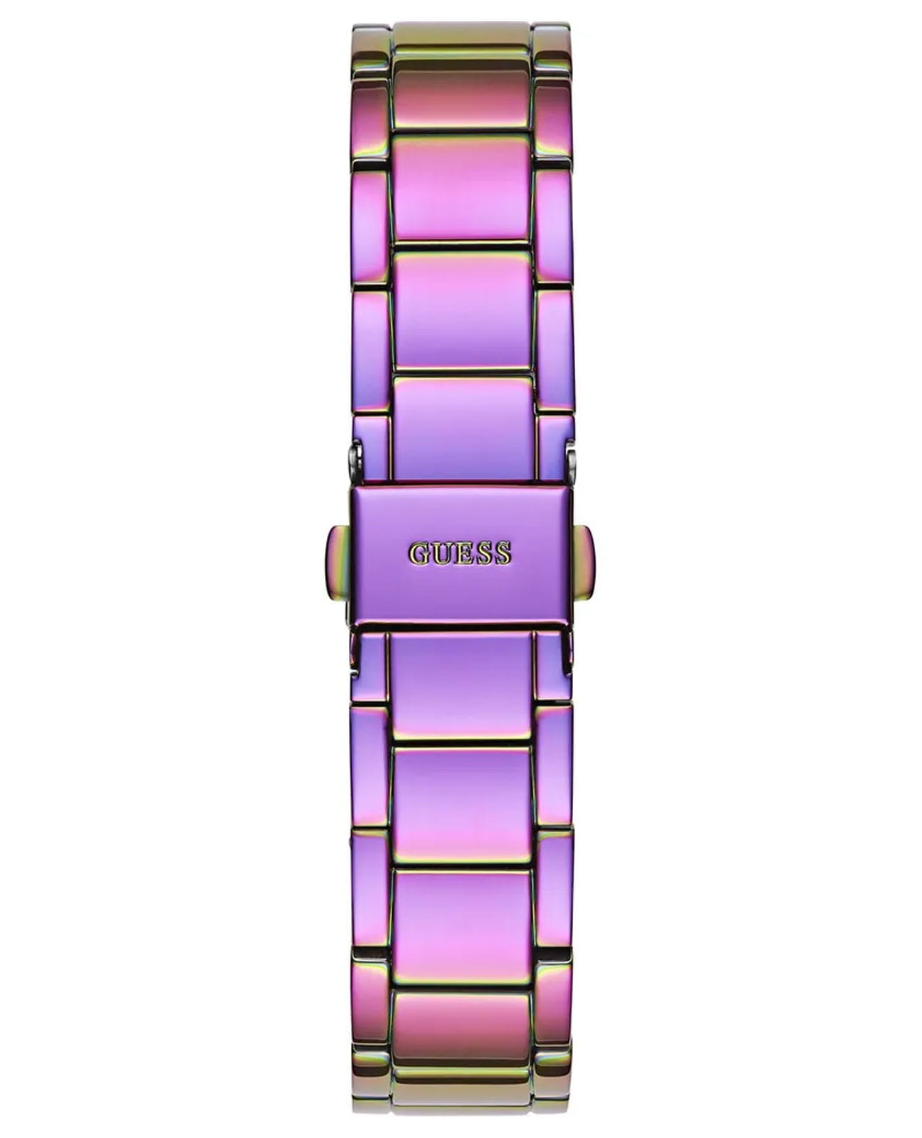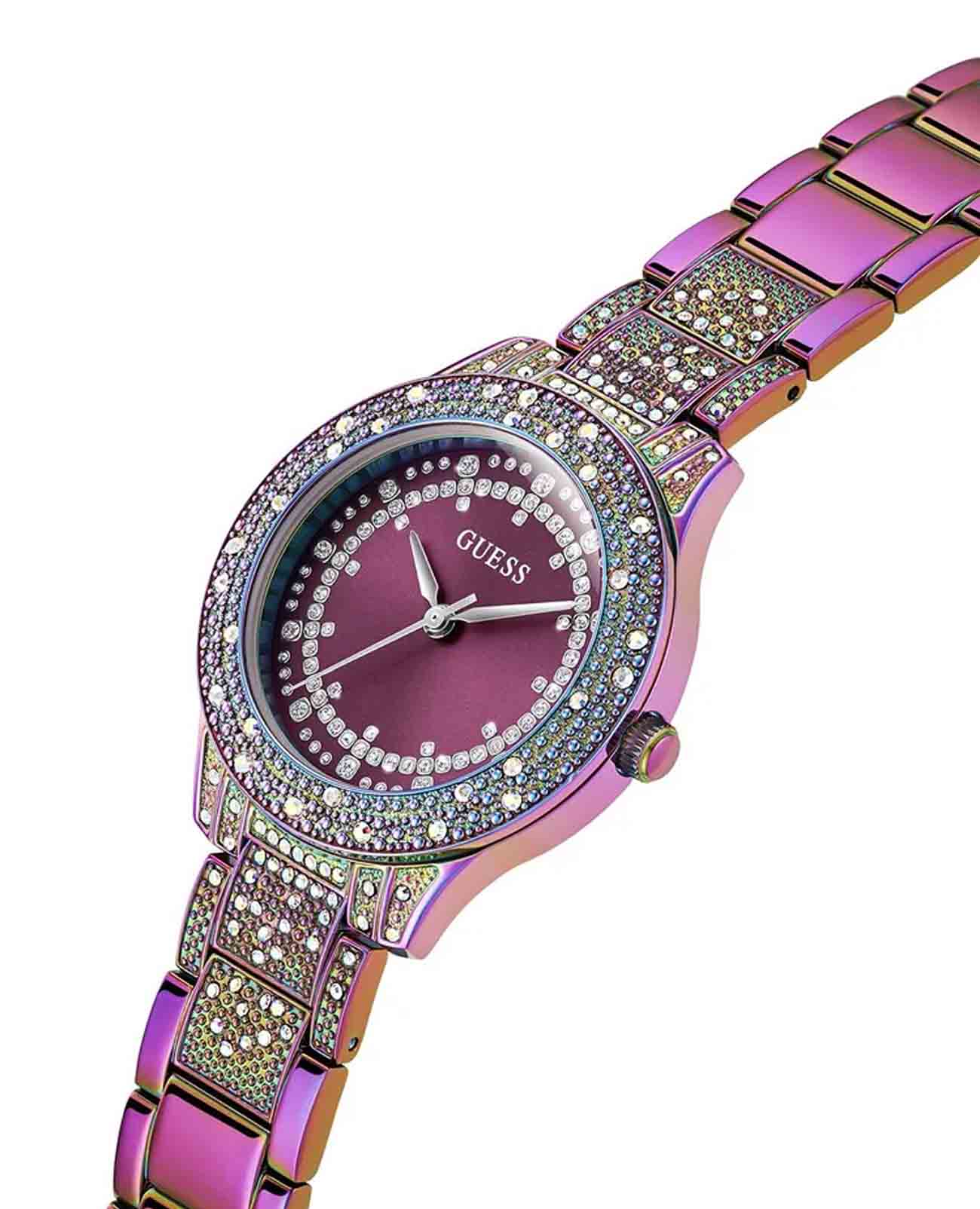 Женские наручные часы с минеральным стекломМинеральное стеклоМинеральное стекло представляет собой искусственно выращенный минерал кварца. Такое стекло отличается особой устойчивостью к повреждениям и царапинам. Уступает по некоторым качествам сапфировому стеклу. Guess Trend GW0746L3, кварцевый механизм с высокой точностью. Корпус часов изготовлен из стали с IP-покрытиемIP-покрытиеМетод ионного напыления. Демонстрирует повышенную устойчивость к истиранию, окислению и химическим веществам. Под воздействием высокого давления и температуры около 1500°C молекулы металла надёжно соединяются с частицами корпуса часов.. БезельБезельВнешний ободок, закрепляющий стекло. В спортивных часах так называется поворотное кольцо с делениями на циферблате, выполняет роль таймера – замеряет отрезки времени на шкале. Неподвижный безель – элемент декора. Однонаправленно вращающийся безель на дайверских часах позволяет фиксировать моменты погружения и выныривания на поверхность. из стали с IP-покрытиемIP-покрытиеМетод ионного напыления. Демонстрирует повышенную устойчивость к истиранию, окислению и химическим веществам. Под воздействием высокого давления и температуры около 1500°C молекулы металла надёжно соединяются с частицами корпуса часов., корпус и циферблат украшены кристаллами. Класс водозащиты: 30 метров, позволит защитить корпус от случайных брызг или капель дождя. Стальной браслет с IP-покрытиемIP-покрытиеМетод ионного напыления. Демонстрирует повышенную устойчивость к истиранию, окислению и химическим веществам. Под воздействием высокого давления и температуры около 1500°C молекулы металла надёжно соединяются с частицами корпуса часов. на раскладной застёжкеРаскладная застёжкаТакой тип застёжки используется только на браслетах из металла. Она никогда не раскрывается полностью, происходит разделение на 2 и более частей. Раскладывающая застёжка снизит вероятность потери часов к минимуму..