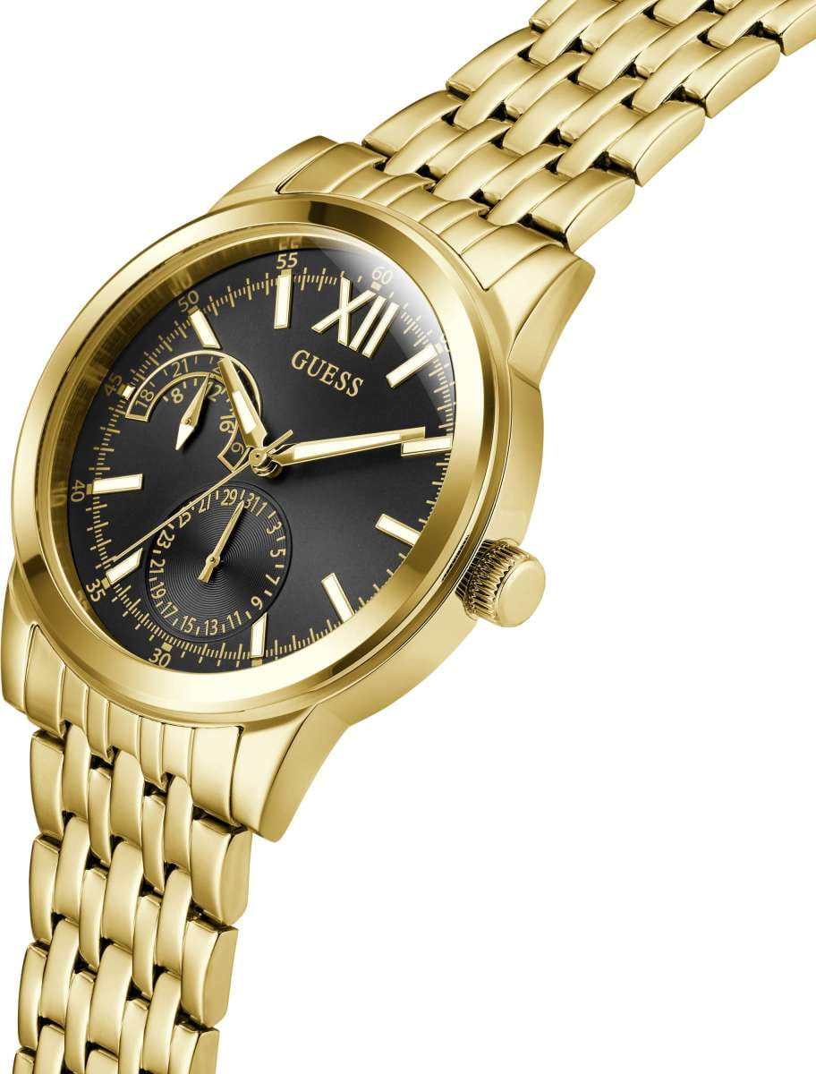 Мужские наручные часы Guess Dress Emerson GW0976G2 – это сочетание элегантности и современного стиля. Изысканные часы оснащены надежным кварцевым механизмом, который обеспечивает точность хода. Корпус часов выполнен из нержавеющей стали с IP-покрытиемIP-покрытиеМетод ионного напыления. Демонстрирует повышенную устойчивость к истиранию, окислению и химическим веществам. Под воздействием высокого давления и температуры около 1500°C молекулы металла надёжно соединяются с частицами корпуса часов. диаметром 42 мм и толщиной 10 мм, придающими модели особый характер. Циферблат оснащен метками в виде штрихов. Дата на отдельном циферблате. Вынесенный циферблат с 24-х часовым указателем времени.Люминесцентное покрытиеЛюминесцентное покрытиеПозволяет считывать показания времени в темноте. Производители наносят на стрелки, часовые индексы, безель или поверхность циферблата светонакопительный состав, дающий холодное свечение. на стрелках и метках обеспечивает отличную видимость в темноте. Стильный стальной браслет с IP-покрытиемIP-покрытиеМетод ионного напыления. Демонстрирует повышенную устойчивость к истиранию, окислению и химическим веществам. Под воздействием высокого давления и температуры около 1500°C молекулы металла надёжно соединяются с частицами корпуса часов. с раскладной застежкойРаскладная застёжкаТакой тип застёжки используется только на браслетах из металла. Она никогда не раскрывается полностью, происходит разделение на 2 и более частей. Раскладывающая застёжка снизит вероятность потери часов к минимуму. гарантирует комфортное ношение и надежную фиксацию. Минеральное стеклоМинеральное стеклоМинеральное стекло представляет собой искусственно выращенный минерал кварца. Такое стекло отличается особой устойчивостью к повреждениям и царапинам. Уступает по некоторым качествам сапфировому стеклу. защищает циферблат от царапин, а водозащита 30WR предохраняет часы от случайных брызг. Эта модель станет отличным выбором для тех, кто ценит стиль и функциональность в одном аксессуаре.