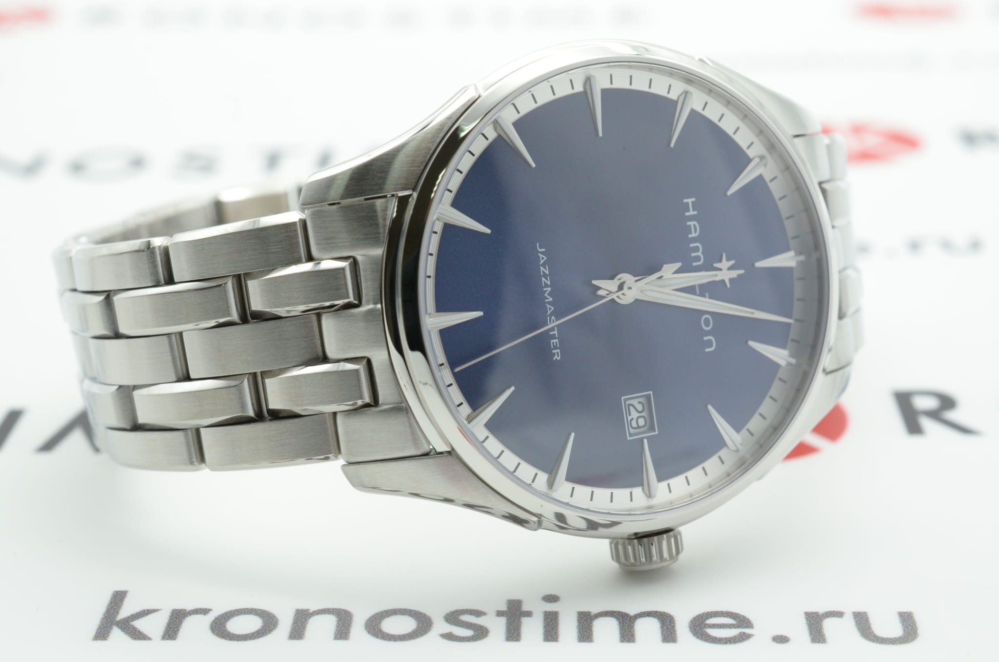 Мужские швейцарские часы Hamilton Jazzmaster Gent Quartz H32451141, кварцевый механизм с высокой точностью. Сапфировое стеклоСапфировое стеклоПрочный и надёжный материал из кристалла сапфира синтетического происхождения, характеризующийся особой твёрдостью и устойчивостью к царапинам и повреждениям. устойчивое к появлению царапин, обладающее высокой прозрачностью. Класс водозащиты: 50 метров, позволит защитить корпус от случайных брызг или капель дождя. Корпус часов изготовлен из нержавеющей стали. Стрелки и метки с люминесцентным покрытиемЛюминесцентное покрытиеПозволяет считывать показания времени в темноте. Производители наносят на стрелки, часовые индексы, безель или поверхность циферблата светонакопительный состав, дающий холодное свечение.. Стальной браслет на застёжке-бабочке с кнопкамиЗастёжка "бабочка"Такой вид застёжки дополняется предохранителями, помогающими избежать случайного раскрытия браслета. Обладают изящным исполнением. . Окошко даты находится в положении трёх часов.