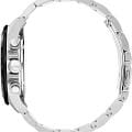 Мужские кварцевые часы Hugo Boss Hero HB1513757 представляют собой стильный хронографХронографФункция позволяет измерять отрезки времени с особой точностью: часы, минуты, секунды. Верным признаком хронографа является наличие на циферблате 3 дополнительных окошек-счётчиков. с круглым корпусом диаметром 43 мм из нержавеющей стали с частичным IP-покрытиемIP-покрытиеМетод ионного напыления. Демонстрирует повышенную устойчивость к истиранию, окислению и химическим веществам. Под воздействием высокого давления и температуры около 1500°C молекулы металла надёжно соединяются с частицами корпуса часов., дополненным черным циферблатом. Модель оснащена высокоточным кварцевым механизмом с функцией хронографаХронографФункция позволяет измерять отрезки времени с особой точностью: часы, минуты, секунды. Верным признаком хронографа является наличие на циферблате 3 дополнительных окошек-счётчиков., включая 60-минутный счетчик и индикацию даты. Циферблат защищен устойчивым к царапинам минеральным стекломМинеральное стеклоМинеральное стекло представляет собой искусственно выращенный минерал кварца. Такое стекло отличается особой устойчивостью к повреждениям и царапинам. Уступает по некоторым качествам сапфировому стеклу., а водонепроницаемость 5 ATM (50 метров) обеспечивает защиту от брызг и дождя. Стальной браслет с частичным IP-покрытиемIP-покрытиеМетод ионного напыления. Демонстрирует повышенную устойчивость к истиранию, окислению и химическим веществам. Под воздействием высокого давления и температуры около 1500°C молекулы металла надёжно соединяются с частицами корпуса часов. и раскладной застежкойРаскладная застёжкаТакой тип застёжки используется только на браслетах из металла. Она никогда не раскрывается полностью, происходит разделение на 2 и более частей. Раскладывающая застёжка снизит вероятность потери часов к минимуму. обеспечивает надежную посадку на запястье, а тахиметрическая шкалаТахиметрРазмеченная шкала, располагается на ободке или безеле часов. Тахиметр позволяет рассчитать скорость на определённом участке пути, расстояние измеряется в километрах или милях. на безеле позволяет производить расчеты скорости. Точность хода составляет ±15 секунд в месяц, что соответствует стандартам кварцевых механизмов. Дизайн модели сочетает спортивную функциональность с элегантным стилем, характерным для коллекции Hero.