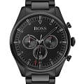 Мужские кварцевые часы Hugo Boss Commissioner HB1513714 представляют собой стильный хронографХронографФункция позволяет измерять отрезки времени с особой точностью: часы, минуты, секунды. Верным признаком хронографа является наличие на циферблате 3 дополнительных окошек-счётчиков. с круглым корпусом диаметром 44 мм из нержавеющей стали с IP-покрытиемIP-покрытиеМетод ионного напыления. Демонстрирует повышенную устойчивость к истиранию, окислению и химическим веществам. Под воздействием высокого давления и температуры около 1500°C молекулы металла надёжно соединяются с частицами корпуса часов. черного цвета. Модель оснащена высокоточным кварцевым механизмом с функцией хронографаХронографФункция позволяет измерять отрезки времени с особой точностью: часы, минуты, секунды. Верным признаком хронографа является наличие на циферблате 3 дополнительных окошек-счётчиков., включая 60-минутный счетчик и 24-часовой индикатор, а также тахиметрической шкалойТахиметрРазмеченная шкала, располагается на ободке или безеле часов. Тахиметр позволяет рассчитать скорость на определённом участке пути, расстояние измеряется в километрах или милях. для расчетов скорости. Черный циферблат с серебристыми стрелками и индексами обеспечивает оптимальную читаемость, защищен устойчивым к царапинам минеральным стекломМинеральное стеклоМинеральное стекло представляет собой искусственно выращенный минерал кварца. Такое стекло отличается особой устойчивостью к повреждениям и царапинам. Уступает по некоторым качествам сапфировому стеклу.. Водонепроницаемость 5 ATM (50 метров) защищает от брызг и дождя. Стальной браслет с IP-покрытиемIP-покрытиеМетод ионного напыления. Демонстрирует повышенную устойчивость к истиранию, окислению и химическим веществам. Под воздействием высокого давления и температуры около 1500°C молекулы металла надёжно соединяются с частицами корпуса часов. и раскладной застежкойРаскладная застёжкаТакой тип застёжки используется только на браслетах из металла. Она никогда не раскрывается полностью, происходит разделение на 2 и более частей. Раскладывающая застёжка снизит вероятность потери часов к минимуму. с фиксатором обеспечивает надежную посадку на запястье.