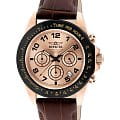Часы оснащены функцией хронографаХронографФункция позволяет измерять отрезки времени с особой точностью: часы, минуты, секунды. Верным признаком хронографа является наличие на циферблате 3 дополнительных окошек-счётчиков. и тахиметромТахиметрРазмеченная шкала, располагается на ободке или безеле часов. Тахиметр позволяет рассчитать скорость на определённом участке пути, расстояние измеряется в километрах или милях., что делает их идеальными для точного измерения времени и скорости различных событий. Циферблат защищен прочным минеральным стекломМинеральное стеклоМинеральное стекло представляет собой искусственно выращенный минерал кварца. Такое стекло отличается особой устойчивостью к повреждениям и царапинам. Уступает по некоторым качествам сапфировому стеклу., обладающим высокой устойчивостью к царапинам. Завинчивающаяся рифленая заводная головка с защитой гарантирует надежную герметизацию механизма, а завинчивающаяся задняя крышка добавляет дополнительную защиту от внешних воздействий. Кожаный ремешок на стандартной застёжке. Часы обладают водозащитой до 200 метров, что позволяет плавать, нырять и заниматься другими водными видами спорта без опасений за сохранность механизма.