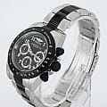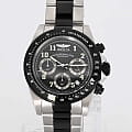 Часы оснащены функцией хронографаХронографФункция позволяет измерять отрезки времени с особой точностью: часы, минуты, секунды. Верным признаком хронографа является наличие на циферблате 3 дополнительных окошек-счётчиков. и тахиметрТахиметрРазмеченная шкала, располагается на ободке или безеле часов. Тахиметр позволяет рассчитать скорость на определённом участке пути, расстояние измеряется в километрах или милях., что позволяет точно измерять скорость и время различных событий. Циферблат защищен прочным минеральным стекломМинеральное стеклоМинеральное стекло представляет собой искусственно выращенный минерал кварца. Такое стекло отличается особой устойчивостью к повреждениям и царапинам. Уступает по некоторым качествам сапфировому стеклу., обеспечивающим высокую устойчивость к царапинам. Завинчивающаяся рифленая заводная головка с защитой гарантирует надежную герметизацию механизма, а завинчивающаяся задняя крышка добавляет дополнительную защиту от внешних воздействий. БезельБезельВнешний ободок, закрепляющий стекло. В спортивных часах так называется поворотное кольцо с делениями на циферблате, выполняет роль таймера – замеряет отрезки времени на шкале. Неподвижный безель – элемент декора. Однонаправленно вращающийся безель на дайверских часах позволяет фиксировать моменты погружения и выныривания на поверхность. с IP-покрытиемIP-покрытиеМетод ионного напыления. Демонстрирует повышенную устойчивость к истиранию, окислению и химическим веществам. Под воздействием высокого давления и температуры около 1500°C молекулы металла надёжно соединяются с частицами корпуса часов..