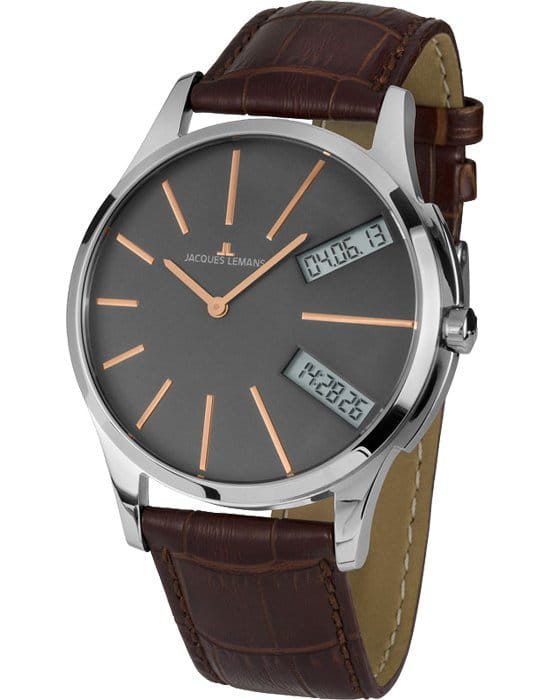 Наручные часы Jacques Lemans призваны ставить на первое место индивидуальный стиль владельца, классическая элегантность придётся по вкусу каждому. Брендовые часы привлекают минималистичным дизайном, отсутствие вычурности и обилия декорирующих элементов делают модель лучшим решением для ежедневного применения. Аксессуар можно носить с деловыми костюмами и повседневной одеждой, он органично сочетается как с классическими брюками, так и с рваными джинсами. Это настоящее часовое искусство высокого качества, часы считаются актуальным вариантом на все времена и с идеальной точностью показывают время благодаря надёжному японскому механизму.