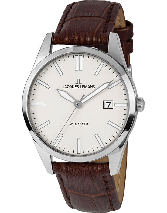 Наручные часы Jacques Lemans призваны ставить на первое место индивидуальный стиль владельца, классическая элегантность придётся по вкусу каждому. Брендовые часы привлекают минималистичным дизайном, отсутствие вычурности и обилия декорирующих элементов делают модель лучшим решением для ежедневного применения. Аксессуар можно носить с деловыми костюмами и повседневной одеждой, он органично сочетается как с классическими брюками, так и с рваными джинсами. Это настоящее часовое искусство высокого качества, часы считаются актуальным вариантом на все времена и с идеальной точностью показывают время благодаря надёжному японскому механизму.