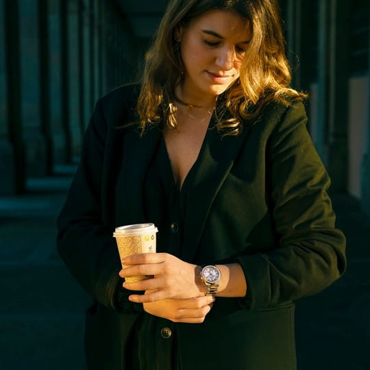 Женские швейцарские часы Jaguar Connected Lady J981/1. Сапфировое стеклоСапфировое стеклоПрочный и надёжный материал из кристалла сапфира синтетического происхождения, характеризующийся особой твёрдостью и устойчивостью к царапинам и повреждениям. устойчивое к мелким механическим повреждениям. Корпус часов изготовлен из нержавеющей стали. Стрелки и метки с люминесцентным покрытиемЛюминесцентное покрытиеПозволяет считывать показания времени в темноте. Производители наносят на стрелки, часовые индексы, безель или поверхность циферблата светонакопительный состав, дающий холодное свечение.. Класс водозащиты: 50 метров, позволит защитить корпус от случайных брызг или капель дождя. БезельБезельВнешний ободок, закрепляющий стекло. В спортивных часах так называется поворотное кольцо с делениями на циферблате, выполняет роль таймера – замеряет отрезки времени на шкале. Неподвижный безель – элемент декора. Однонаправленно вращающийся безель на дайверских часах позволяет фиксировать моменты погружения и выныривания на поверхность. с PVD-покрытиемPVDУльтратонкое покрытие наносится в технике вакуумного напыления, сочетает в себе нитрид титана особой прочности со слоем золота или оксида хрома. Несёт в себе декоративную или защитную функцию. и циферблат инкрустированы цирконием. Стальной браслет с частичным PVD-покрытиемPVDУльтратонкое покрытие наносится в технике вакуумного напыления, сочетает в себе нитрид титана особой прочности со слоем золота или оксида хрома. Несёт в себе декоративную или защитную функцию. на раскладной застёжкеРаскладная застёжкаТакой тип застёжки используется только на браслетах из металла. Она никогда не раскрывается полностью, происходит разделение на 2 и более частей. Раскладывающая застёжка снизит вероятность потери часов к минимуму.. За точный ход работы часов, из коллекции Connected, отвечает кварцевый гибридный механизм швейцарского производства со Смарт-Модулем. Данный тип механизма обеспечивает возможность подключить часы к телефону через Bluetooth и управлять большим рядом дополнительных функций на выбор с помошью приложения Jaguar. Дополнительные функции: отображение даты и дня недели, секундомер, таймер, GMT, шагомер, поиск телефона, включение/выключение звука телефона при входящих вызовах, переключение музыки, вибро-уведомления.