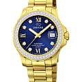Женские швейцарские часы Jaguar Woman J895/3. Кварцевый швейцарский калибр Ronda 705. Сапфировое стеклоСапфировое стеклоПрочный и надёжный материал из кристалла сапфира синтетического происхождения, характеризующийся особой твёрдостью и устойчивостью к царапинам и повреждениям. устойчивое к мелким механическим повреждениям. Корпус и браслет часов изготовлены из нержавеющей стали с PVD-покрытиемPVDУльтратонкое покрытие наносится в технике вакуумного напыления, сочетает в себе нитрид титана особой прочности со слоем золота или оксида хрома. Несёт в себе декоративную или защитную функцию.. Стрелки с люминесцентным покрытиемЛюминесцентное покрытиеПозволяет считывать показания времени в темноте. Производители наносят на стрелки, часовые индексы, безель или поверхность циферблата светонакопительный состав, дающий холодное свечение.. Окошко даты находится в положении 3 часа. Класс водозащиты: 200 метров, позволит плавать, нырять и заниматься другими водными видами спорта. Стальной браслет с частичным PVD-покрытиемPVDУльтратонкое покрытие наносится в технике вакуумного напыления, сочетает в себе нитрид титана особой прочности со слоем золота или оксида хрома. Несёт в себе декоративную или защитную функцию. на раскладной застёжкеРаскладная застёжкаТакой тип застёжки используется только на браслетах из металла. Она никогда не раскрывается полностью, происходит разделение на 2 и более частей. Раскладывающая застёжка снизит вероятность потери часов к минимуму.. Циферблат украшен кристаллами в роли часовых индексов. БезельБезельВнешний ободок, закрепляющий стекло. В спортивных часах так называется поворотное кольцо с делениями на циферблате, выполняет роль таймера – замеряет отрезки времени на шкале. Неподвижный безель – элемент декора. Однонаправленно вращающийся безель на дайверских часах позволяет фиксировать моменты погружения и выныривания на поверхность. с PVD-покрытиемPVDУльтратонкое покрытие наносится в технике вакуумного напыления, сочетает в себе нитрид титана особой прочности со слоем золота или оксида хрома. Несёт в себе декоративную или защитную функцию. инкрустирован кристаллами.