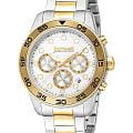 JUST CAVALLI JC1G243M0275 — стильные итальянские часы с функцией хронографаХронографФункция позволяет измерять отрезки времени с особой точностью: часы, минуты, секунды. Верным признаком хронографа является наличие на циферблате 3 дополнительных окошек-счётчиков. и секундомераСекундомерСекундоме́р — прибор, способный измерять интервалы времени с точностью до долей секунды., которые сочетают в себе элегантность и современный функционал. Круглый корпус диаметром 42 мм выполнен из нержавеющей стали, толщина корпуса составляет 11 мм, а на безельБезельВнешний ободок, закрепляющий стекло. В спортивных часах так называется поворотное кольцо с делениями на циферблате, выполняет роль таймера – замеряет отрезки времени на шкале. Неподвижный безель – элемент декора. Однонаправленно вращающийся безель на дайверских часах позволяет фиксировать моменты погружения и выныривания на поверхность. нанесено PVD-покрытиеPVDУльтратонкое покрытие наносится в технике вакуумного напыления, сочетает в себе нитрид титана особой прочности со слоем золота или оксида хрома. Несёт в себе декоративную или защитную функцию., что придает модели выразительный внешний вид и надежную защиту от внешних воздействий. Часы оснащены кварцевым механизмом, также обладают функцией отображения даты, что делает их удобными для ежедневного использования. Минеральное стеклоМинеральное стеклоМинеральное стекло представляет собой искусственно выращенный минерал кварца. Такое стекло отличается особой устойчивостью к повреждениям и царапинам. Уступает по некоторым качествам сапфировому стеклу. защищает часы от царапин, а водозащита 100 метров позволяет не снимать их во время плавания и занятий спортом. Стальной браслет с частичным PVD-покрытиемPVDУльтратонкое покрытие наносится в технике вакуумного напыления, сочетает в себе нитрид титана особой прочности со слоем золота или оксида хрома. Несёт в себе декоративную или защитную функцию. на раскладной застёжкеРаскладная застёжкаТакой тип застёжки используется только на браслетах из металла. Она никогда не раскрывается полностью, происходит разделение на 2 и более частей. Раскладывающая застёжка снизит вероятность потери часов к минимуму. обеспечивает комфортное ношение. Стрелки и метки с люминесцентным покрытиемЛюминесцентное покрытиеПозволяет считывать показания времени в темноте. Производители наносят на стрелки, часовые индексы, безель или поверхность циферблата светонакопительный состав, дающий холодное свечение. обеспечивают отличную читаемость в любое время суток.