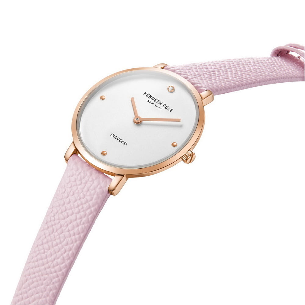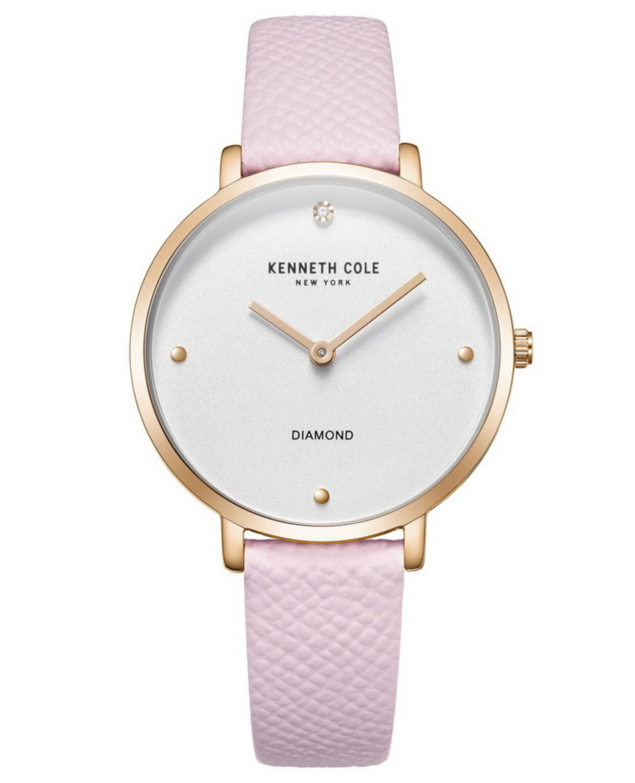 Женские кварцевые часы с минеральным стекломМинеральное стеклоМинеральное стекло представляет собой искусственно выращенный минерал кварца. Такое стекло отличается особой устойчивостью к повреждениям и царапинам. Уступает по некоторым качествам сапфировому стеклу. Kenneth Cole Classic KCWLA2220003, кварцевый механизм с высокой точностью. Класс водозащиты: 30 метров, позволит защитить корпус от случайных брызг или капель дождя. Корпус изготовлен из нержавеющей стали с PVD-покрытиемPVDУльтратонкое покрытие наносится в технике вакуумного напыления, сочетает в себе нитрид титана особой прочности со слоем золота или оксида хрома. Несёт в себе декоративную или защитную функцию.. Серебристый циферблат украшен бриллиантом. Кожаный ремешок на стандартной застёжке.