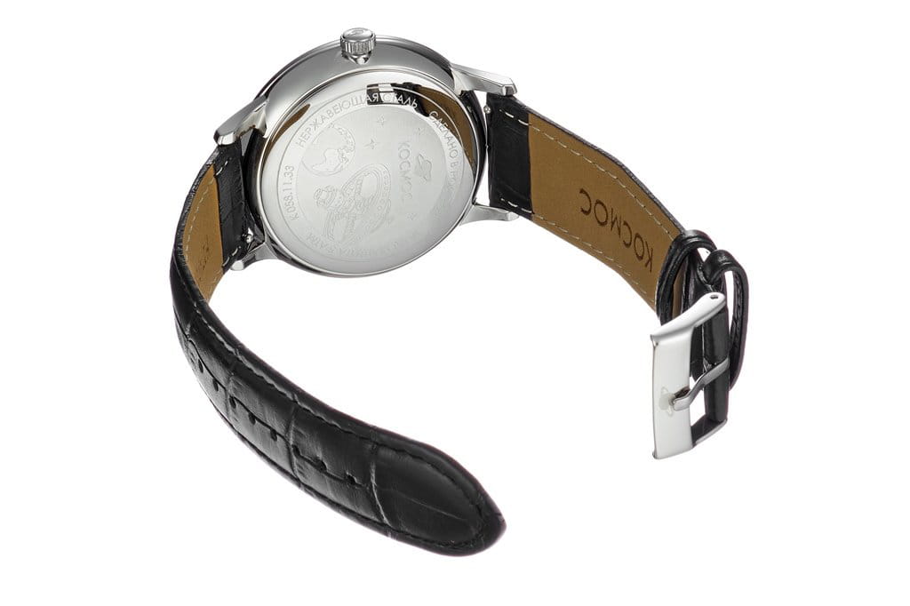 Мужские наручные часы Космос Космопорт K 058.11.37 — это сочетание традиций часового искусства 60-70-х годов и футуристического дизайна, вдохновленного космическими исследованиями. Они не только служат напоминанием о прошлом, но и побуждают задуматься о будущем, позволяя наслаждаться качеством и смыслом, вложенными в каждую деталь. Полированный корпус часов выполнен в виде силуэта летающей тарелки благодаря выпуклым формам стекла и нижней части корпуса. Стальные ушки, которые напоминают опоры летающей тарелки, завершает общий образ. На задней крышке часов выгравирован фантазийный сюжет – космическая станция будущего. Циферблат желтого цвета выполнен в ретро стиле с закруглёнными краями, что требует применения сложной технологии производства, характерной для часов прошлых лет. Кончик секундной стрелки повторяет эту форму, а на выпуклом градиентном циферблате выполнена шлифовка, напоминающая солнечные лучи. Индексы, изготовленные вручную и закрепленные на двух штифтах, добавляют изысканности. Также присутствуют ретроградные индикаторы даты и второго времени (24 часа), которые возвращаются в исходное положение одним движением. Люминесцентное покрытиеЛюминесцентное покрытиеПозволяет считывать показания времени в темноте. Производители наносят на стрелки, часовые индексы, безель или поверхность циферблата светонакопительный состав, дающий холодное свечение. на часовой и минутной стрелках, а также на стрелках ретроградных индикаторов и окантовке циферблата создает эффект светящегося ореола в темноте. Форма минерального стеклаМинеральное стеклоМинеральное стекло представляет собой искусственно выращенный минерал кварца. Такое стекло отличается особой устойчивостью к повреждениям и царапинам. Уступает по некоторым качествам сапфировому стеклу., представляющего собой двояковыпуклую конструкцию, тщательно проработана. Такое стекло не искажает изображение на циферблате, потому что внутренняя поверхность остаётся плоской, создавая эффект линзы. Производственный процесс для достижения двух параллельно изогнутых поверхностей очень сложен, и требуется высокая точность, чтобы избежать повреждения стекла. Ремешок из черной натуральной кожи оснащён креплениями, которые позволяют легко снимать и надевать его без использования дополнительных инструментов. Заводная головка, застежка и ремешок украшены фирменным логотипом, что подчеркивает индивидуальность и стиль этих часов.