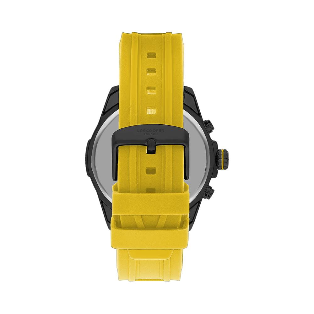 Lee Cooper LC07432.657  — элегантная модель с функциональными возможностями для повседневного использования. Круглый корпус из нержавеющей стали диаметром 48 мм с IP-покрытиемIP-покрытиеМетод ионного напыления. Демонстрирует повышенную устойчивость к истиранию, окислению и химическим веществам. Под воздействием высокого давления и температуры около 1500°C молекулы металла надёжно соединяются с частицами корпуса часов. придаёт часам классический и современный вид. Циферблат защищён минеральным стекломМинеральное стеклоМинеральное стекло представляет собой искусственно выращенный минерал кварца. Такое стекло отличается особой устойчивостью к повреждениям и царапинам. Уступает по некоторым качествам сапфировому стеклу., устойчивым к царапинам, хорошо может выдержать небольшие удары и падения. Часы работают на кварцевом механизме, обеспечивающем точность хода. Каучуковый ремешок желтого цвета на стандартной застёжке гарантирует удобную посадку и надёжную фиксацию на запястье. Водозащита 50 метров защищает часы от брызг и дождя, делая их подходящими для повседневного использования. Стрелки и метки покрыты люминесцентным покрытиемЛюминесцентное покрытиеПозволяет считывать показания времени в темноте. Производители наносят на стрелки, часовые индексы, безель или поверхность циферблата светонакопительный состав, дающий холодное свечение., обеспечивающим отличную читаемость в темноте.