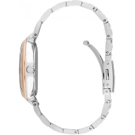 Женские наручные часы Lee Cooper LC07568.590 — это изысканная модель, сочетающая элегантный дизайн и практичность. Корпус диаметром 34 мм выполнен из суперметалла с IP-покрытиемIP-покрытиеМетод ионного напыления. Демонстрирует повышенную устойчивость к истиранию, окислению и химическим веществам. Под воздействием высокого давления и температуры около 1500°C молекулы металла надёжно соединяются с частицами корпуса часов. золотистого оттенка, придавая часам уникальный и утончённый вид. Перламутровый циферблат с аналоговым отображением времени добавляет свежий и стильный акцент, делая часы привлекательными для различных случаев. Модель оснащена надёжным кварцевым механизмом, обеспечивающим точность и долговечность. Минеральное стеклоМинеральное стеклоМинеральное стекло представляет собой искусственно выращенный минерал кварца. Такое стекло отличается особой устойчивостью к повреждениям и царапинам. Уступает по некоторым качествам сапфировому стеклу. защищает циферблат от повреждений и царапин, сохраняя его презентабельный вид. Водонепроницаемость 30 метров защищает часы от случайных брызг, что делает их подходящими для повседневных ситуаций, таких как мытьё рук или прогулки под лёгким дождём. Раскладная застёжкаРаскладная застёжкаТакой тип застёжки используется только на браслетах из металла. Она никогда не раскрывается полностью, происходит разделение на 2 и более частей. Раскладывающая застёжка снизит вероятность потери часов к минимуму. обеспечивает удобную посадку и надёжность при ношении. В целом, эти часы являются отличным выбором для тех, кто ищет аксессуар, объединяющий классический стиль, уникальное цветовое решение и функциональность. Их гармоничное сочетание серебристых и золотистых оттенков с элегантным перламутровым циферблатом и качественным механизмом делает их идеальным дополнением к любому гардеробу — от официального до повседневного.
