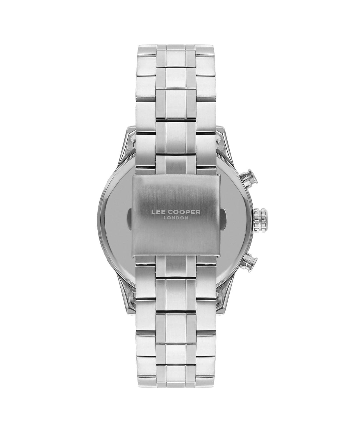 Мужские часы Lee Cooper LC07836.390 — это стильное сочетание элегантности и современного дизайна. Изысканный корпус диаметром 45 мм выполнен из суперметалла, который придает модели особый изысканный вид. Циферблат защищен минеральным стекломМинеральное стеклоМинеральное стекло представляет собой искусственно выращенный минерал кварца. Такое стекло отличается особой устойчивостью к повреждениям и царапинам. Уступает по некоторым качествам сапфировому стеклу., обеспечивающим устойчивость к царапинам. Метки в виде штрихов. Часы оснащены надежным кварцевым механизмом, а стальной браслет на раскладной застёжкеРаскладная застёжкаТакой тип застёжки используется только на браслетах из металла. Она никогда не раскрывается полностью, происходит разделение на 2 и более частей. Раскладывающая застёжка снизит вероятность потери часов к минимуму. гарантирует комфортную посадку на запястье. Стрелки и метки с люминесцентным покрытиемЛюминесцентное покрытиеПозволяет считывать показания времени в темноте. Производители наносят на стрелки, часовые индексы, безель или поверхность циферблата светонакопительный состав, дающий холодное свечение. позволяют легко считывать время даже в условиях недостаточного освещения. Мультифункциональная модель с индикацией даты, дня недели, со вторым часовым поясомВторой часовой поясФункция, позволяющая отображать время двух часовых поясов одновременно.. Водозащита 50 метров позволит защитить корпус от случайных брызг или капель дождя. Lee Cooper — отличный выбор для тех, кто ценит утонченность и качество.